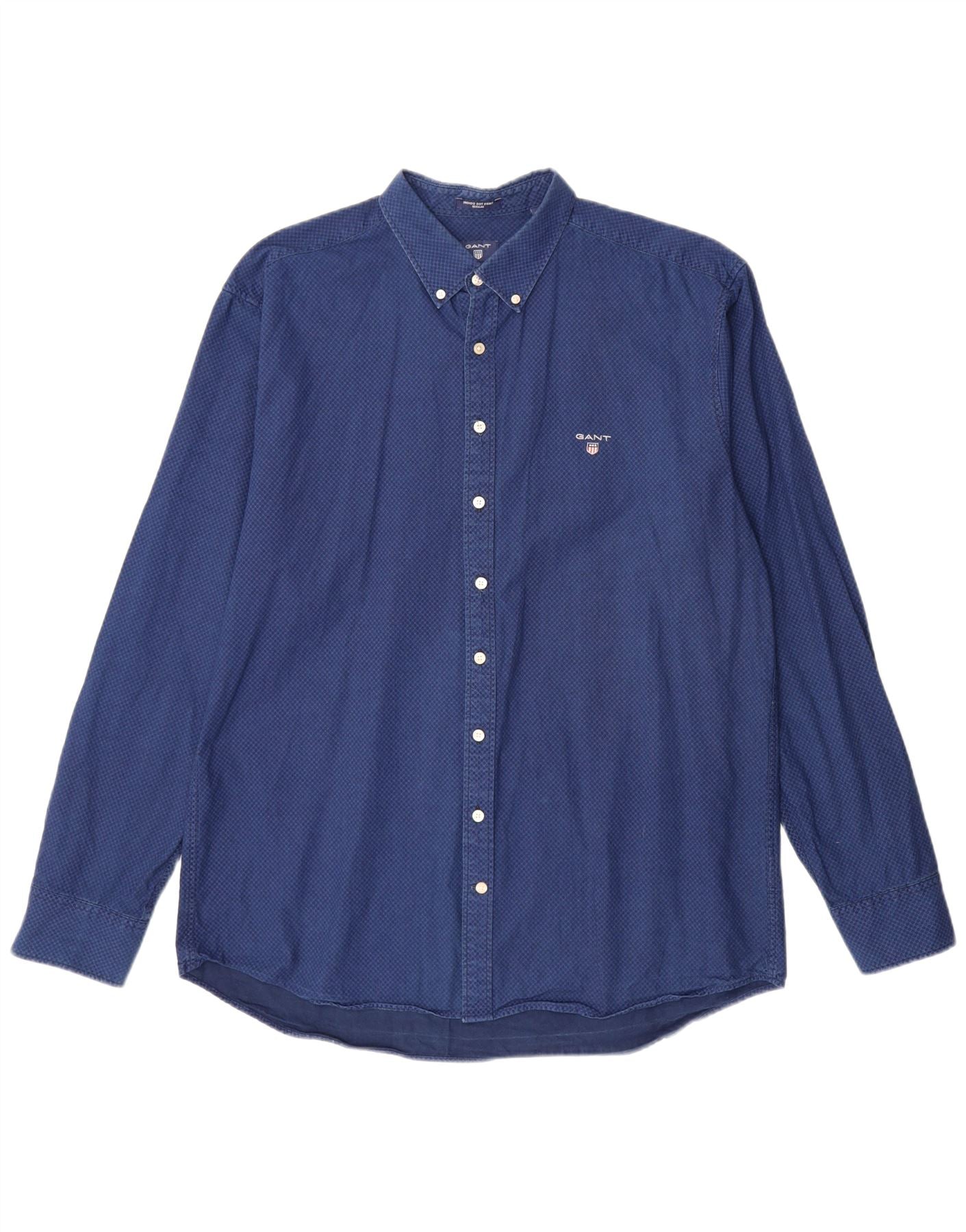 Cămașă GANT pentru bărbați, cu ajustare normală, mărimea 45/46 18 2XL, bumbac geometric, albastru