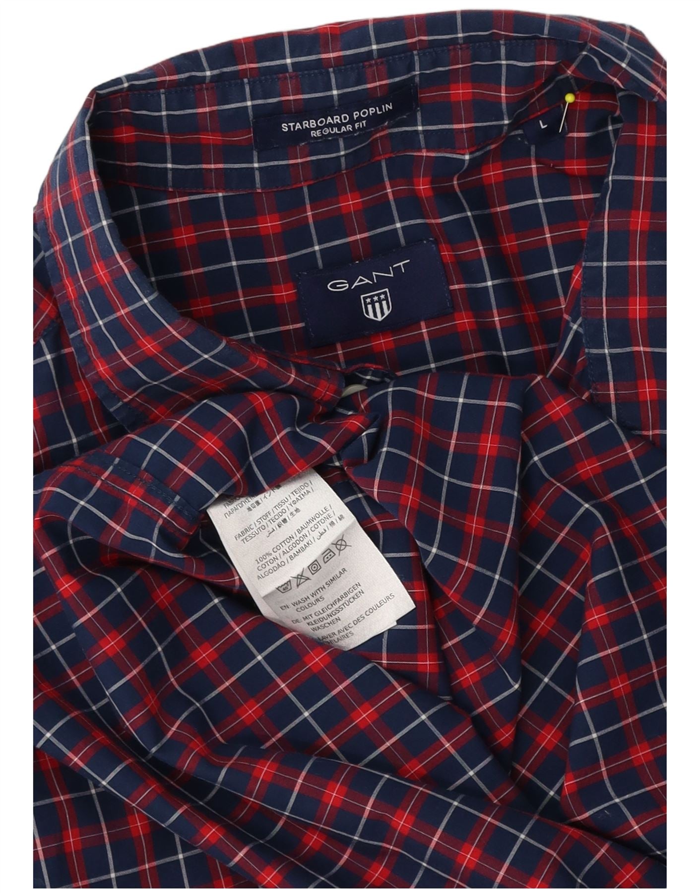 - Descriere AI: Această cămașă pentru bărbați Gant este confecționată din țesătură din 100 de bumbac, având un model vibrant de carouri bleumarin și roșu. Are un decolteu clasic cu guler și un nasturi complet în față pentru un aspect inteligent. Mânecile scurte și o potrivire obișnuită asigură o purtare confortabilă. Un singur buzunar la piept adaugă detalii practice acestui design atemporal.