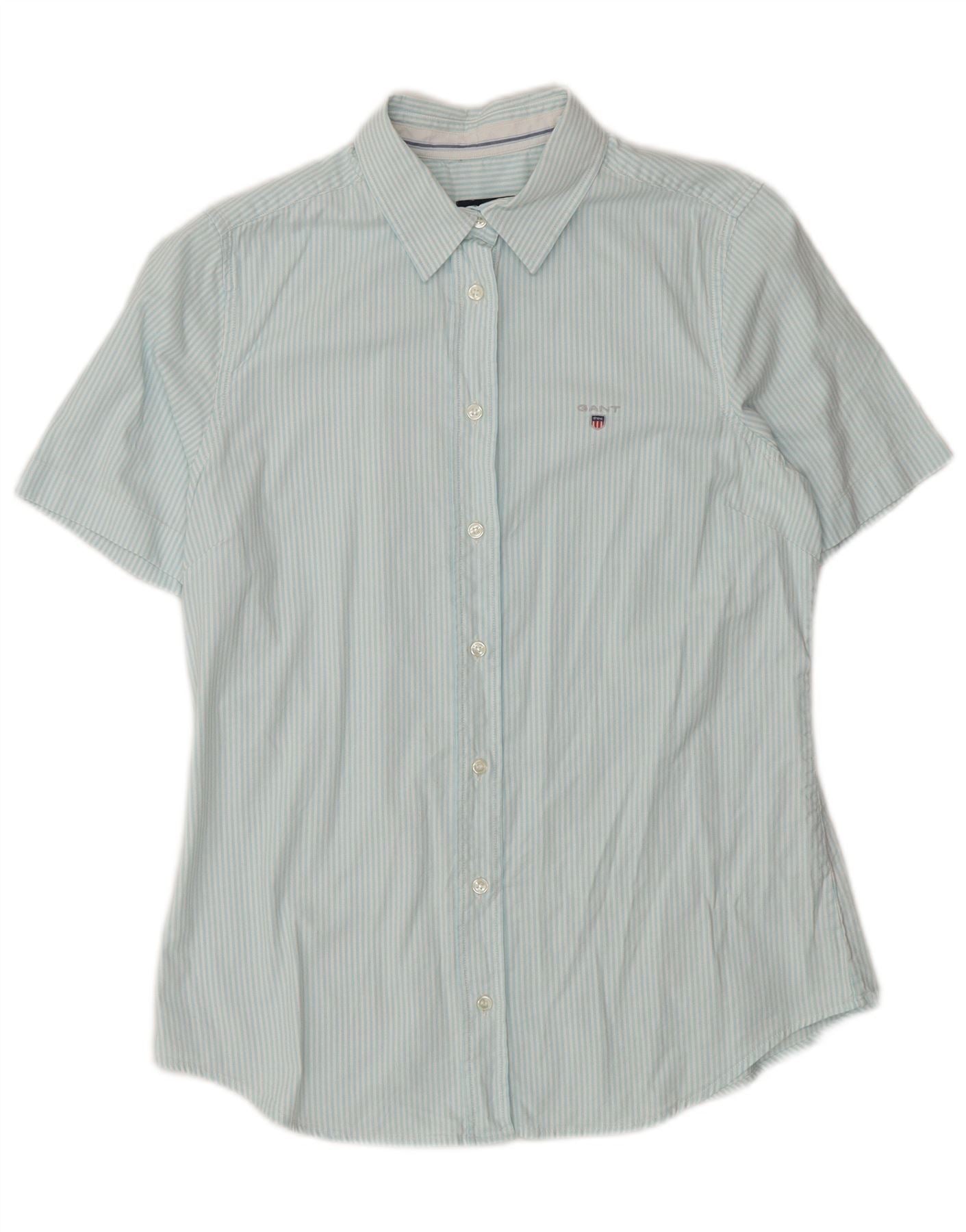 Cămașă cu mânecă scurtă pentru femei GANT UK 12, bumbac cu dungi albastre medii