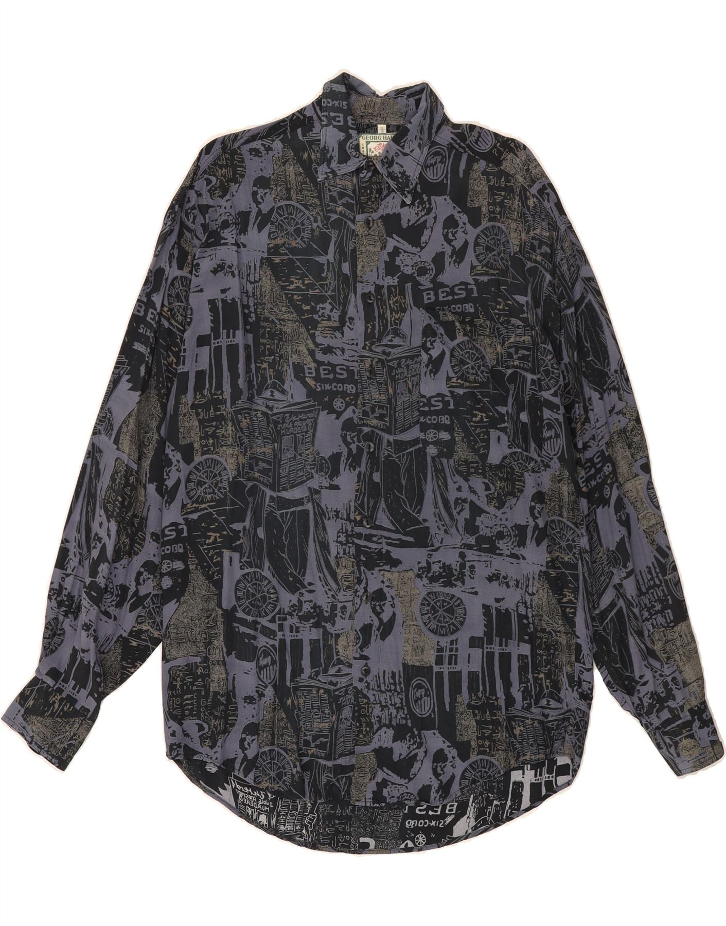 GEORGE HAUPT Mens Graphic Shirt Size 38 Small Navy Blue Viscose