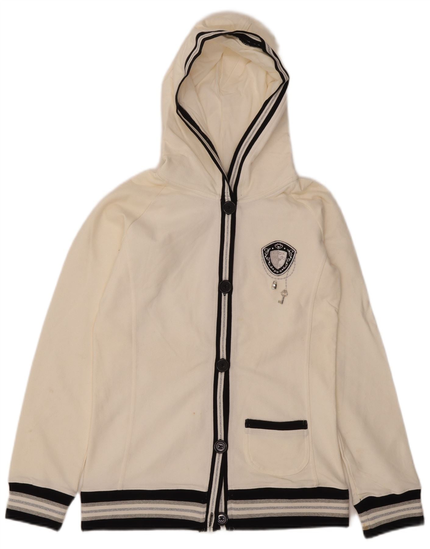 GEOX Girls Hooded Tracksuit Top Jacket 13-14 Years White Striped Cotton