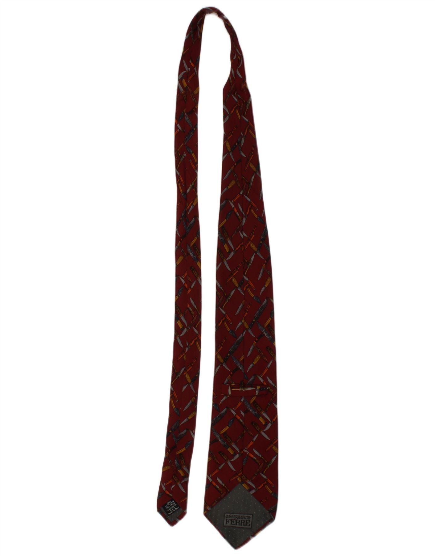 GIANFRANCO FERRE Mens Tie One Size Burgundy Silk Novelty