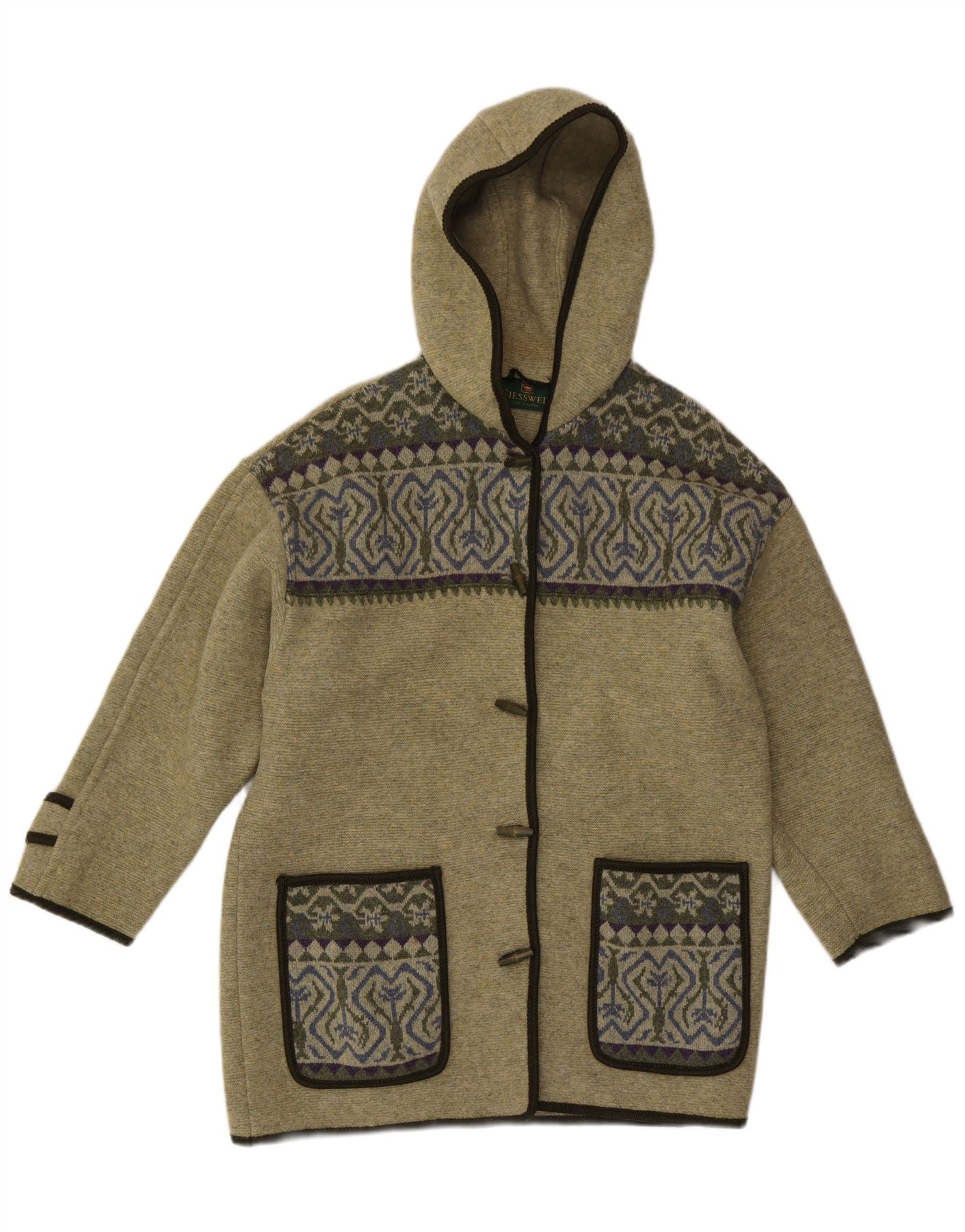 Home > Femei > Îmbrăcăminte Depop > GIESSWEIN Pulover cardigan cu glugă pentru femei UK 14 Large Green Fair Isle