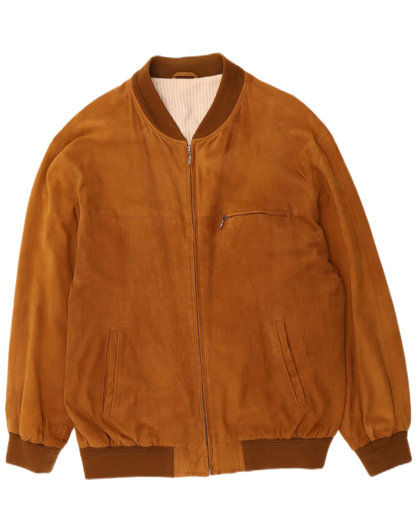GILBERTO Mens Suede Bomber Jacket IT 60 5XL Brown Leather