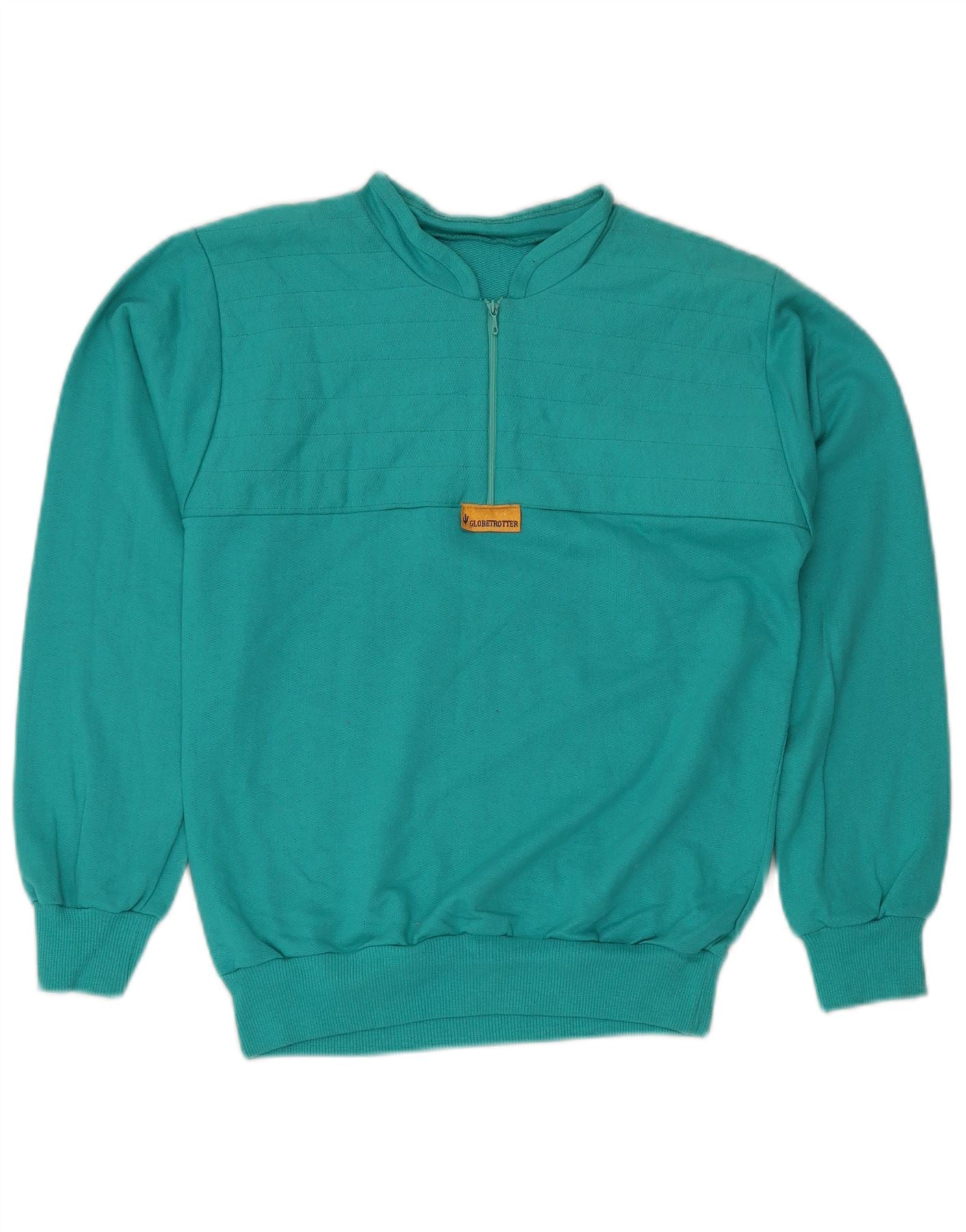 GLOBE TROTTER Pulover pentru femei cu fermoar și gât, UK 14, bumbac albastru mediu