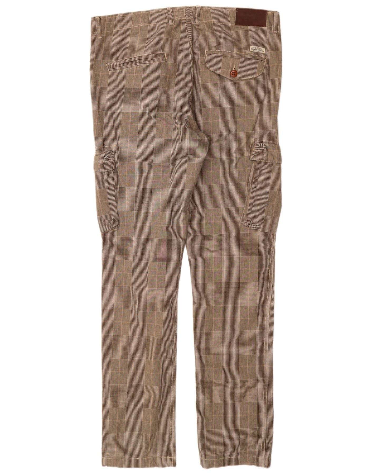 GRAND & HILLS Pantaloni cargo subțiri pentru bărbați IT 50 Large W34 L33 Gri Check
