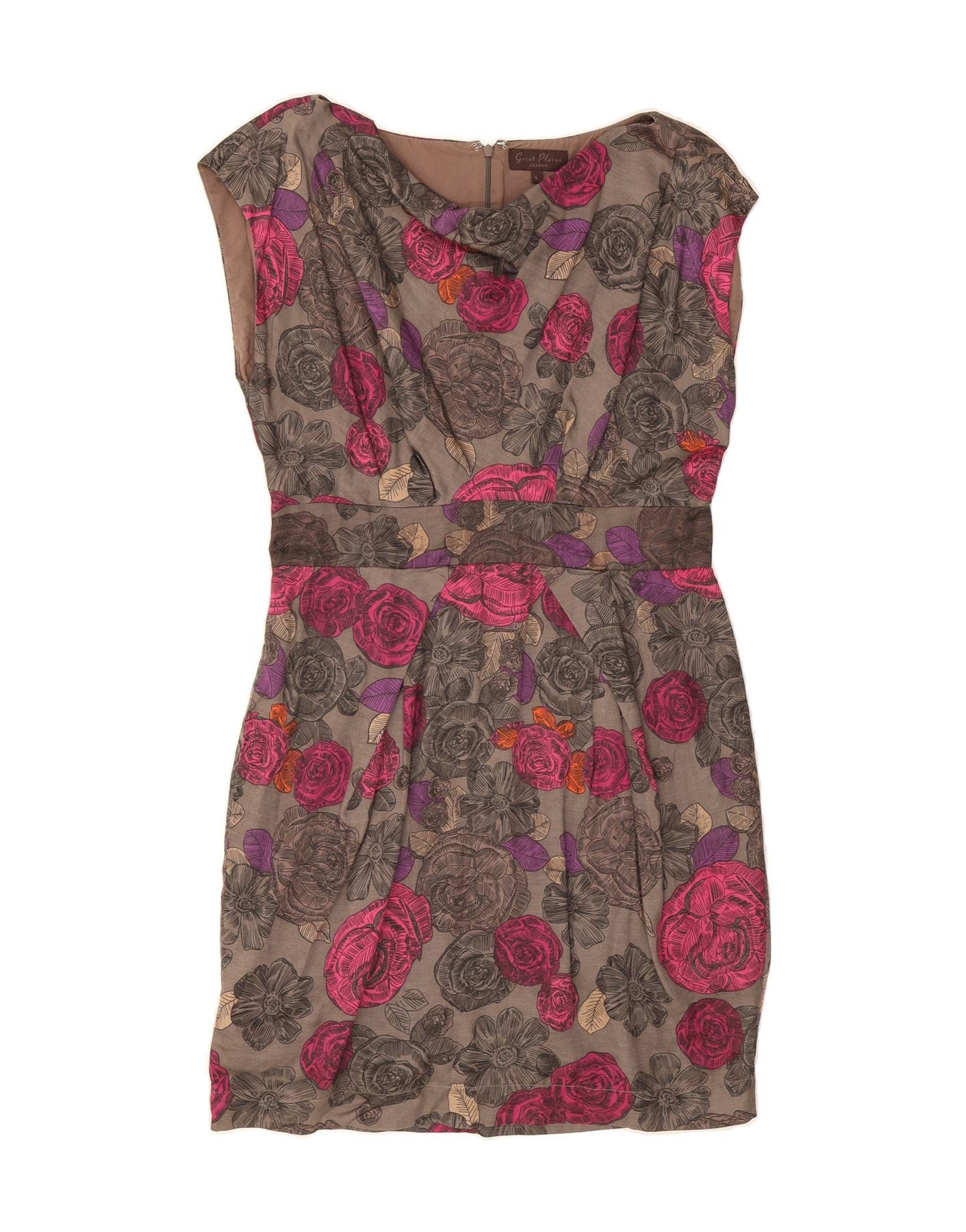 GREAT PLAINS Womens Sleeveless Sheath Dress UK 14 Large Grey Floral Cotton
