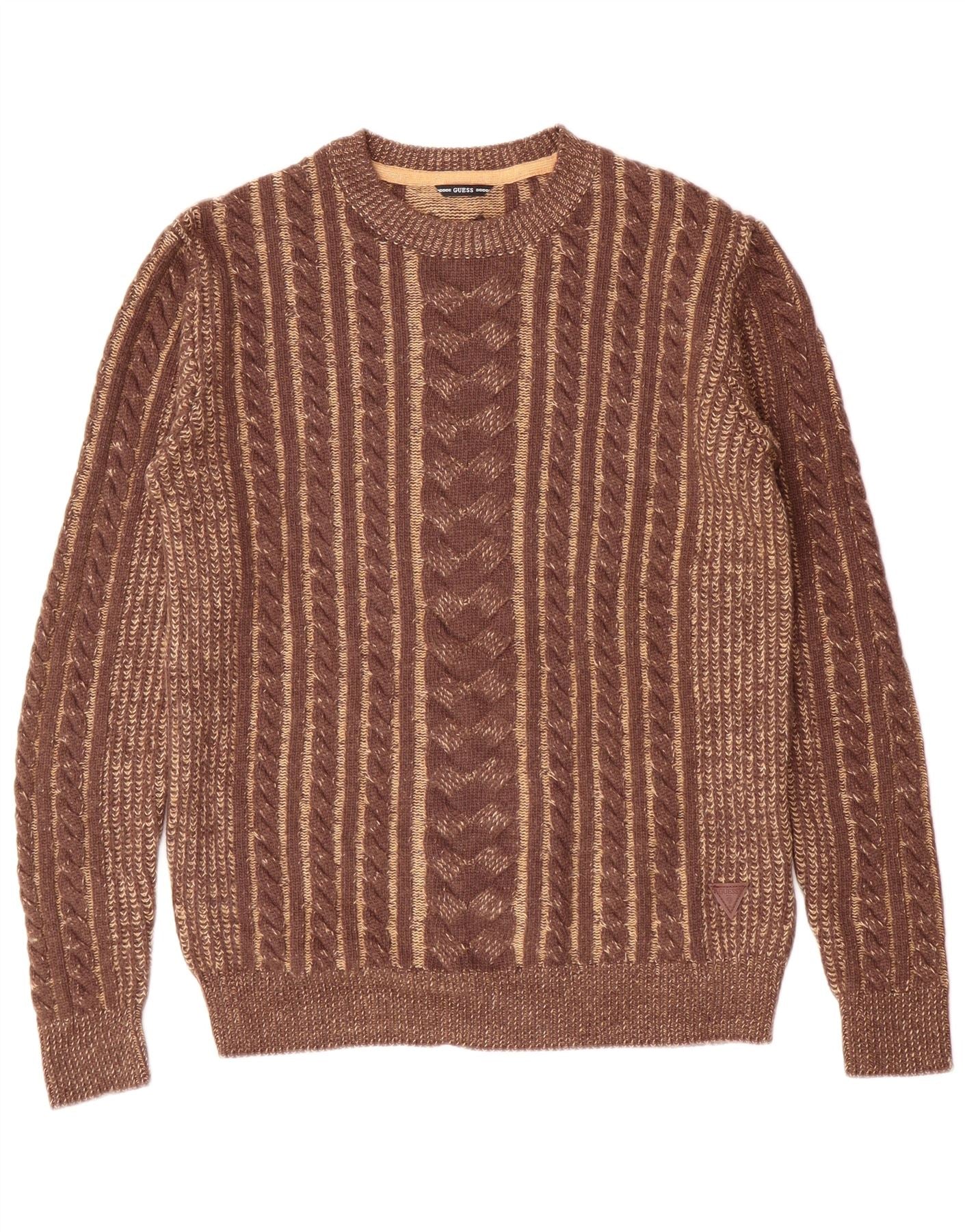 Pulover GUESS pentru bărbați cu gâtul turnat din poliamidă maro mică