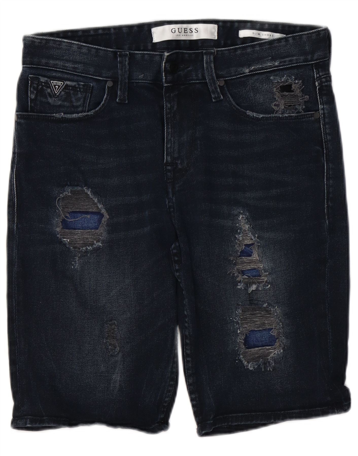 Pantaloni scurți GUESS pentru bărbați, subțiri, învechiți, din denim, W30, bumbac mediu albastru bleumarin