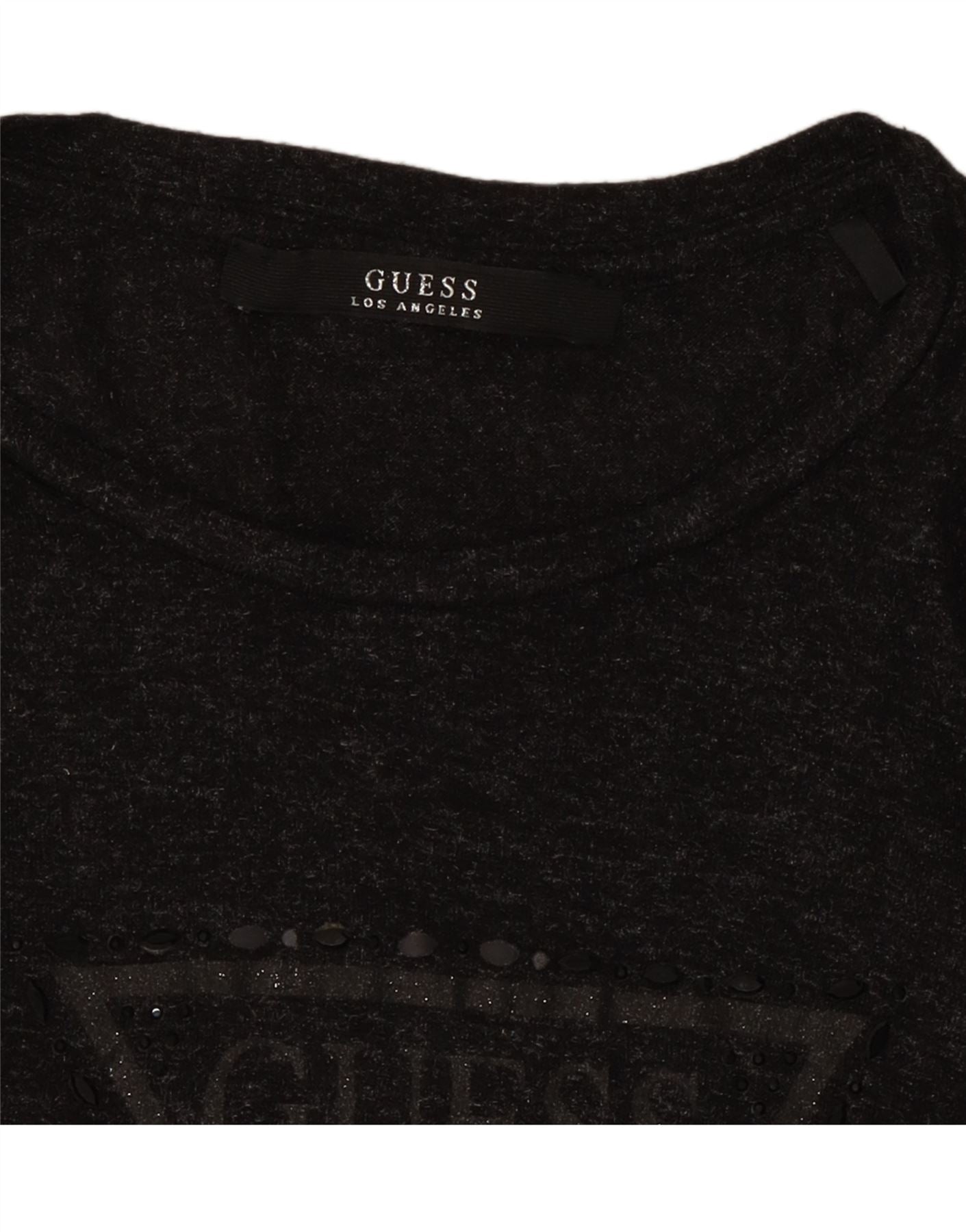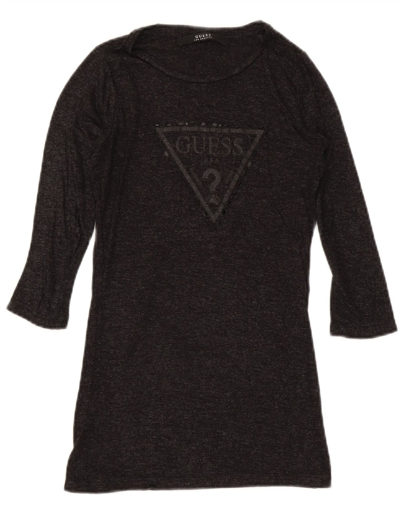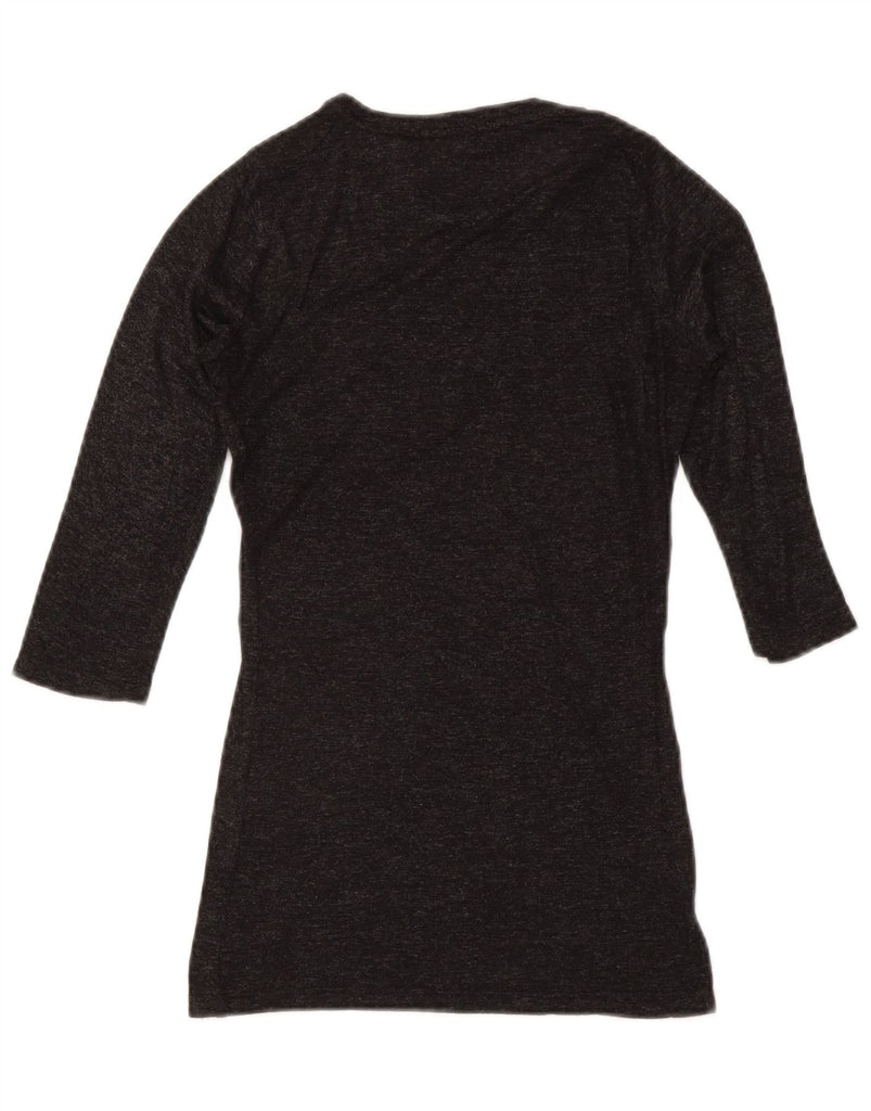 GUESS Womens 3/4 Sleeve Graphic T-Shirt Top UK 2 2XS Black Flecked