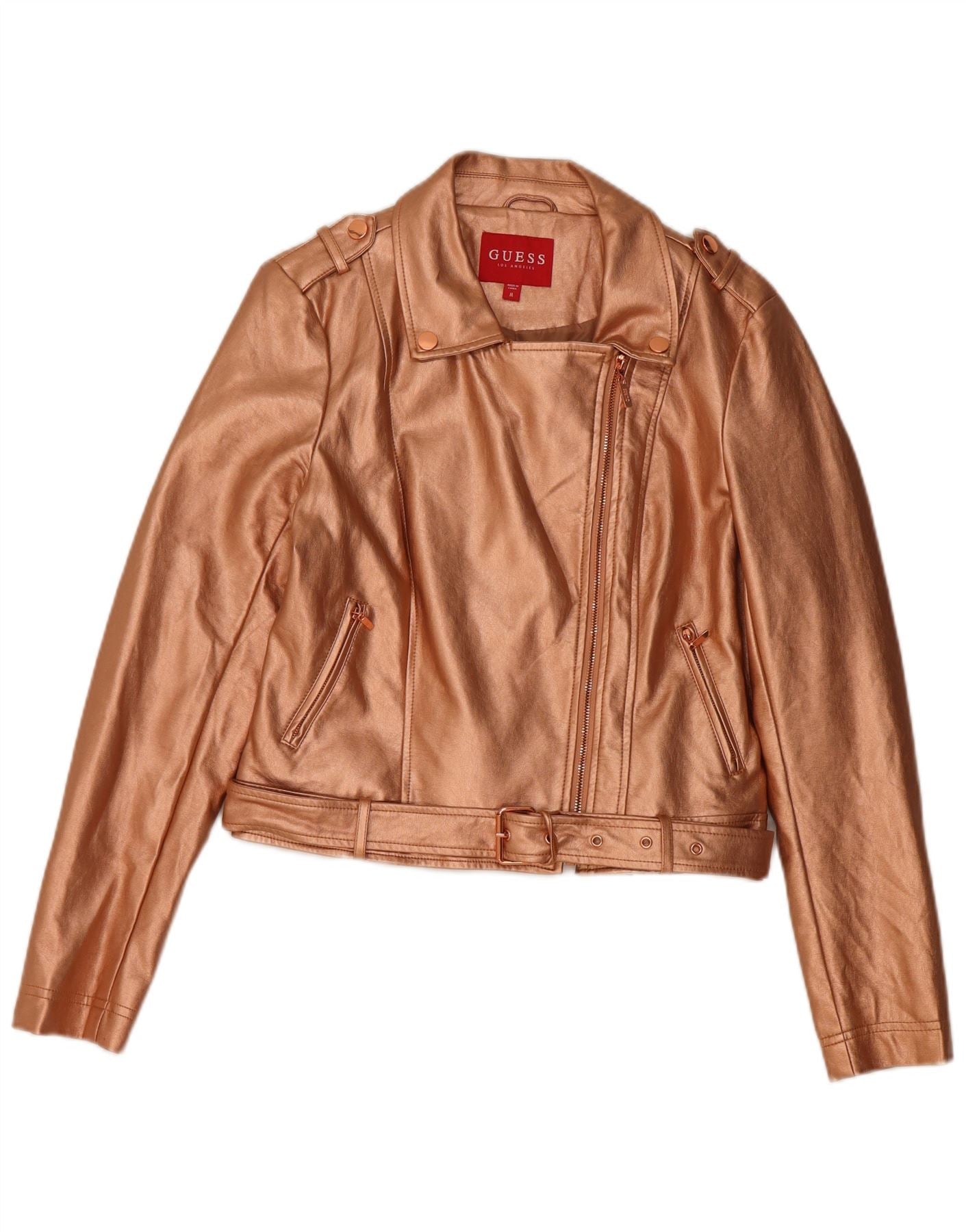 Jachetă de motociclist din piele artificială pentru femei GUESS UK 12 Poliuretan mediu auriu