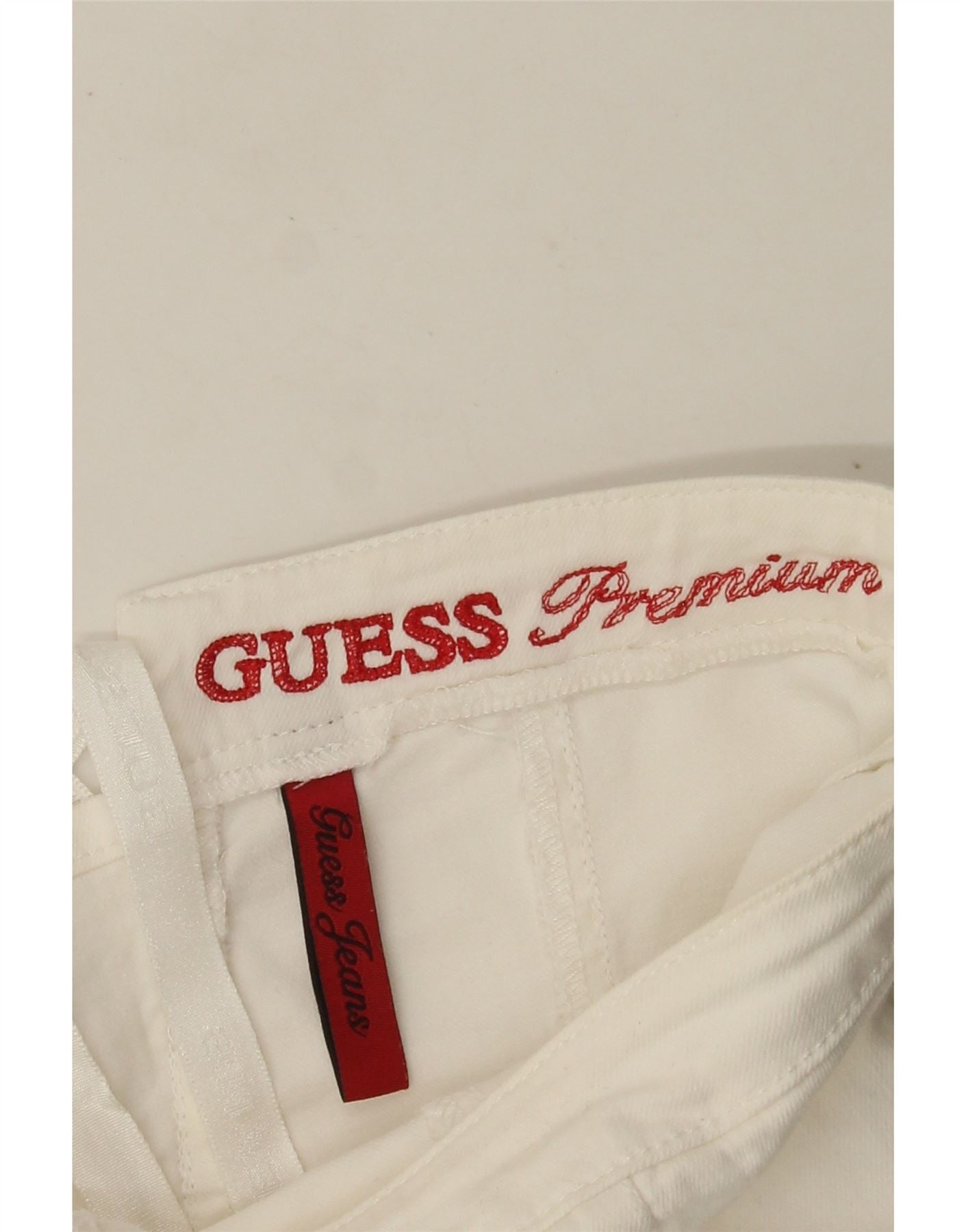 Combi denim fără bretele pentru femei GUESS UK 6 XS Alb