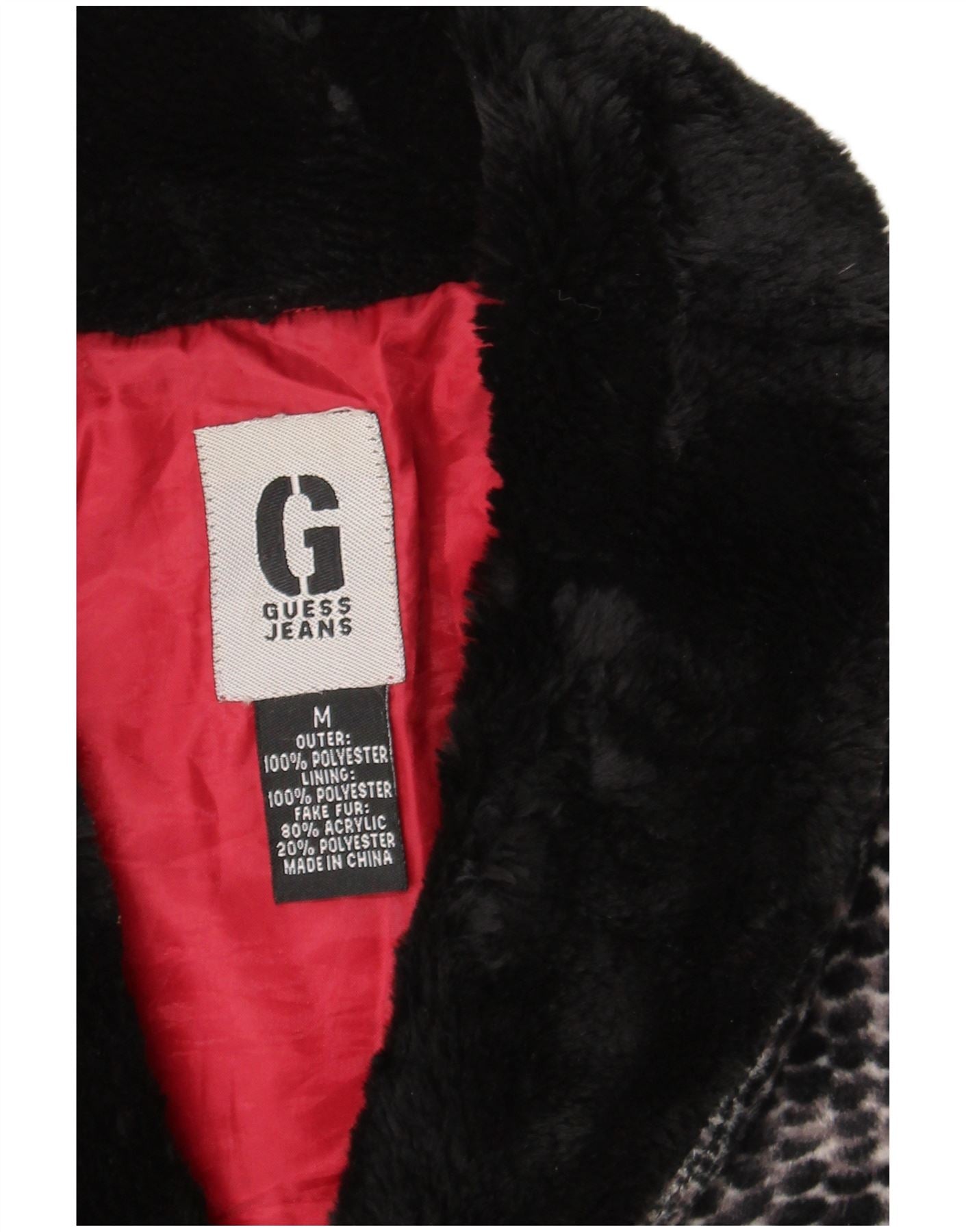 Jachetă de blană artificială Guess pentru femei UK 14, gri mediu, poliester cu imprimeu animal