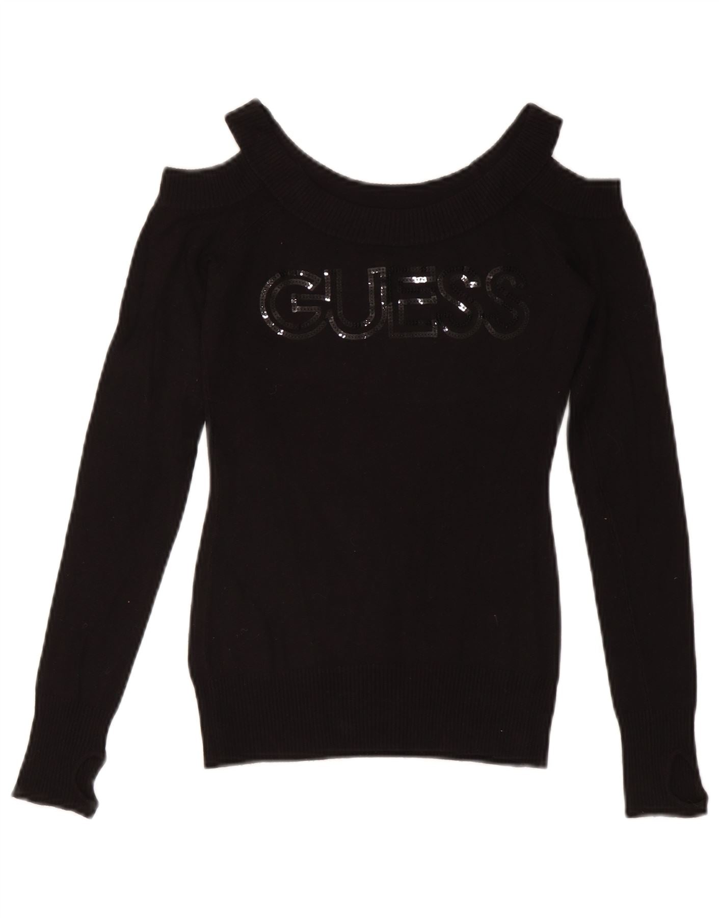 Pulover GUESS pentru damă cu grafică cu gât barcă, UK 8, mic, negru