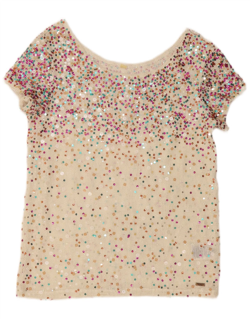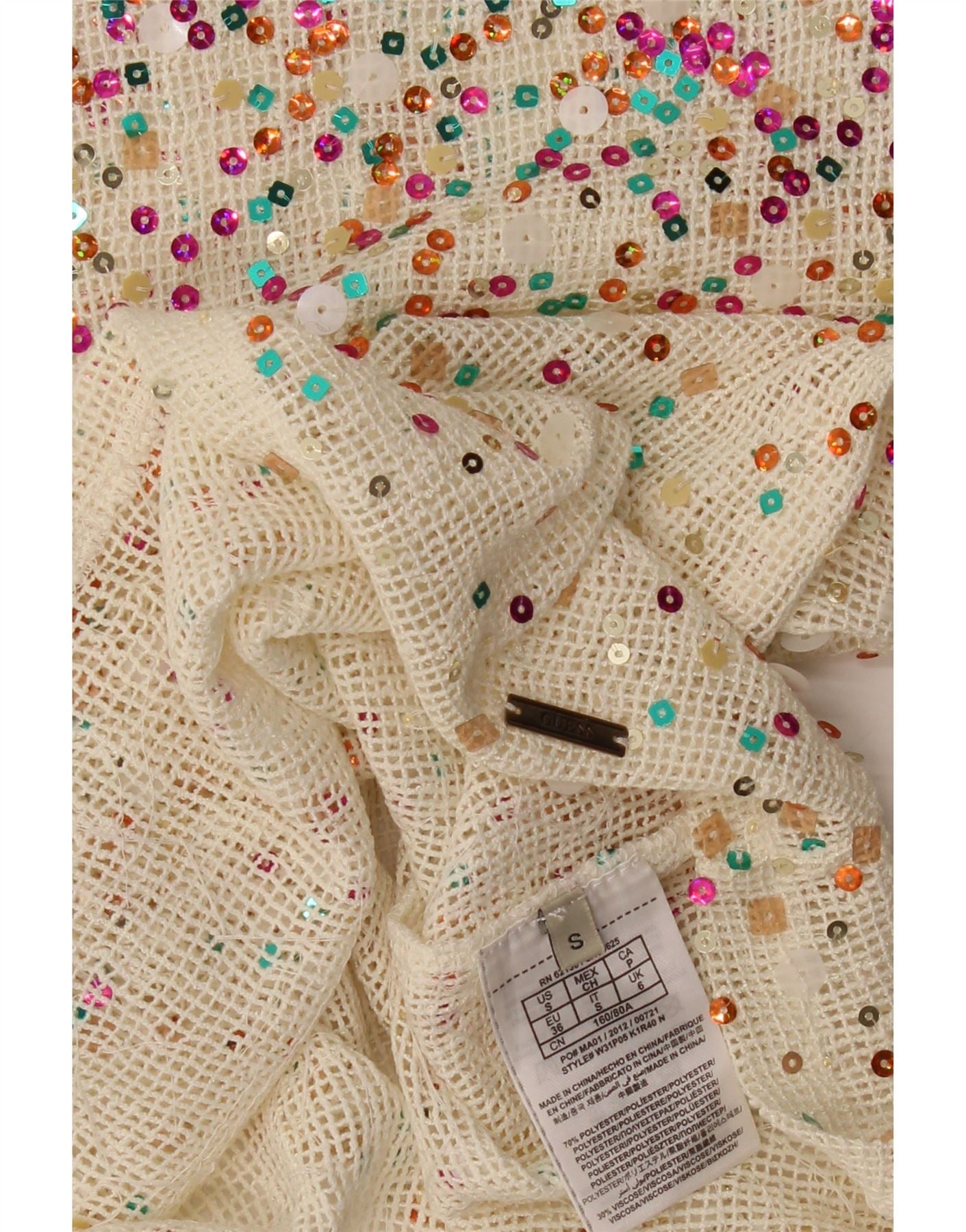 Bluză din croșetat cu paiete GUESS pentru femei, UK 10, poliester alb mic