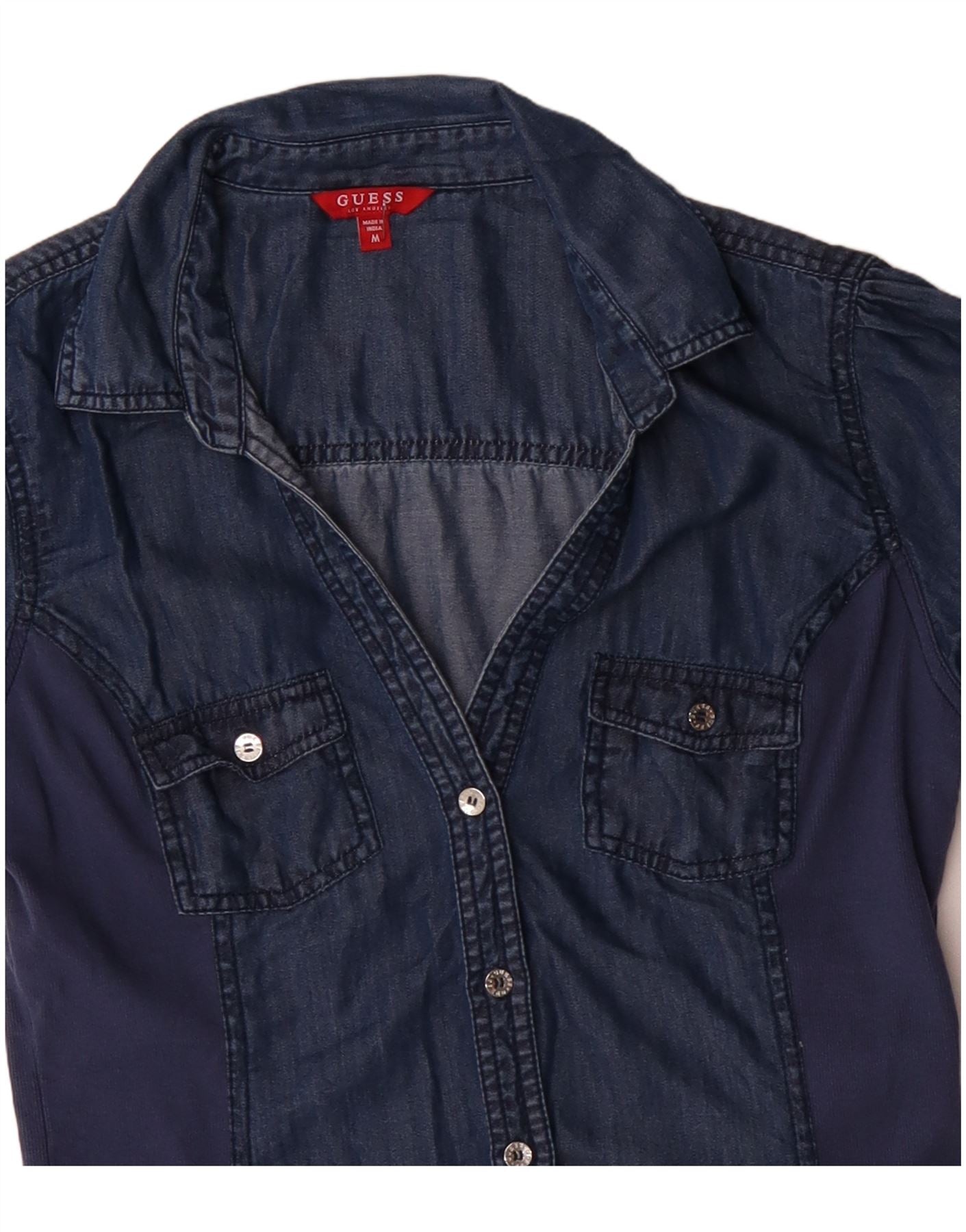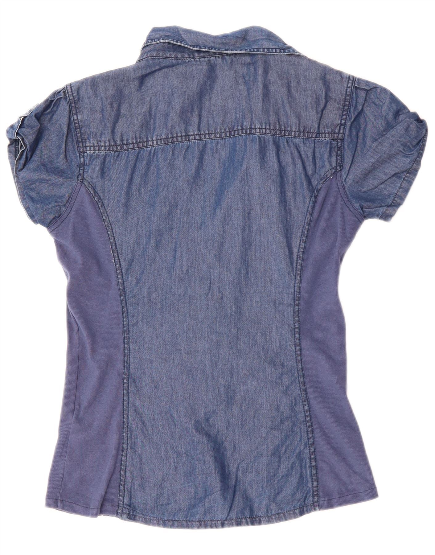 Bluză cămașă din denim cu mânecă scurtă pentru femei GUESS UK 12 Tencel mediu albastru bleumarin