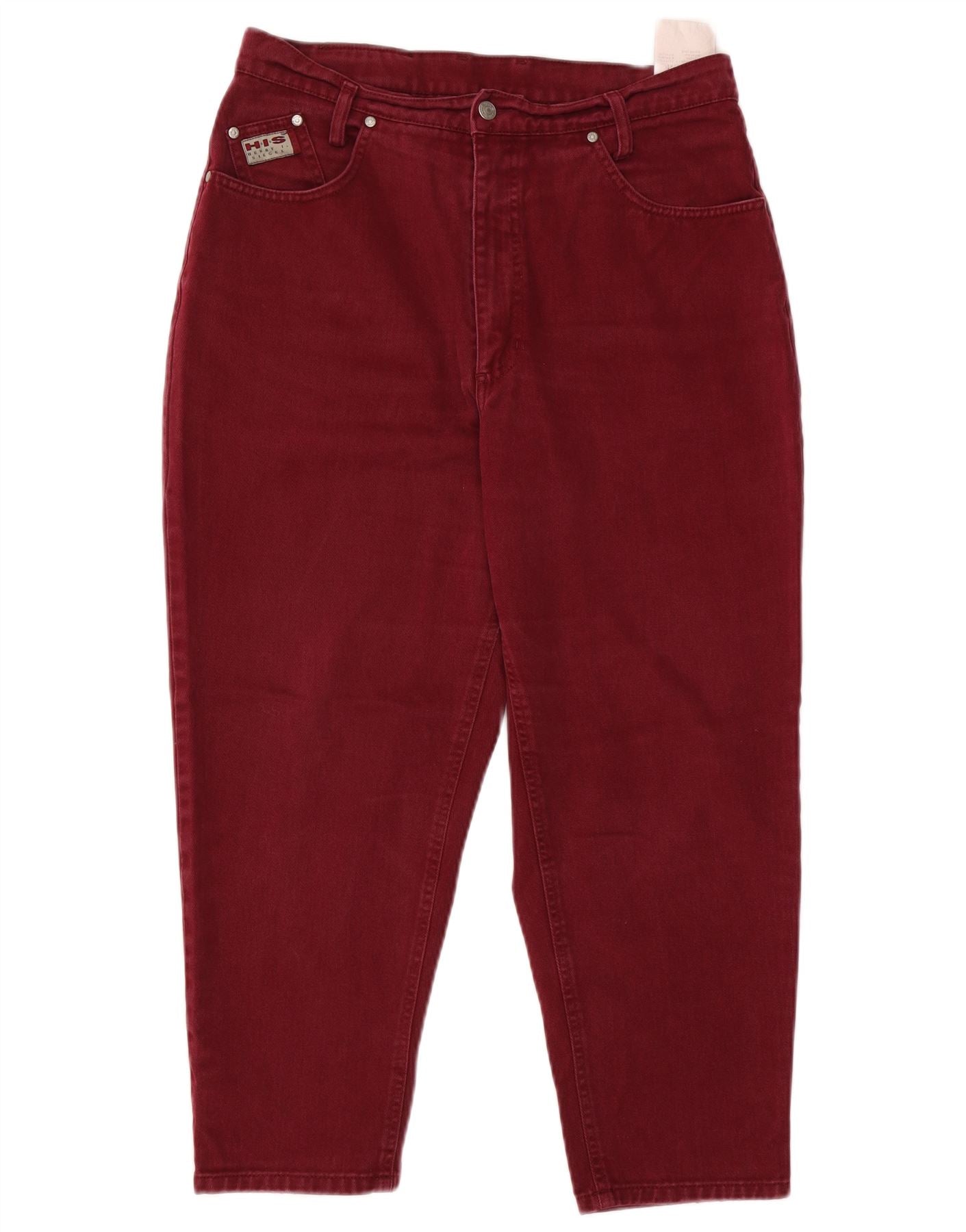 H.I.S Blugi conici crop cu talie înaltă pentru femei UK 20 2XL W34 L25 Burgundy