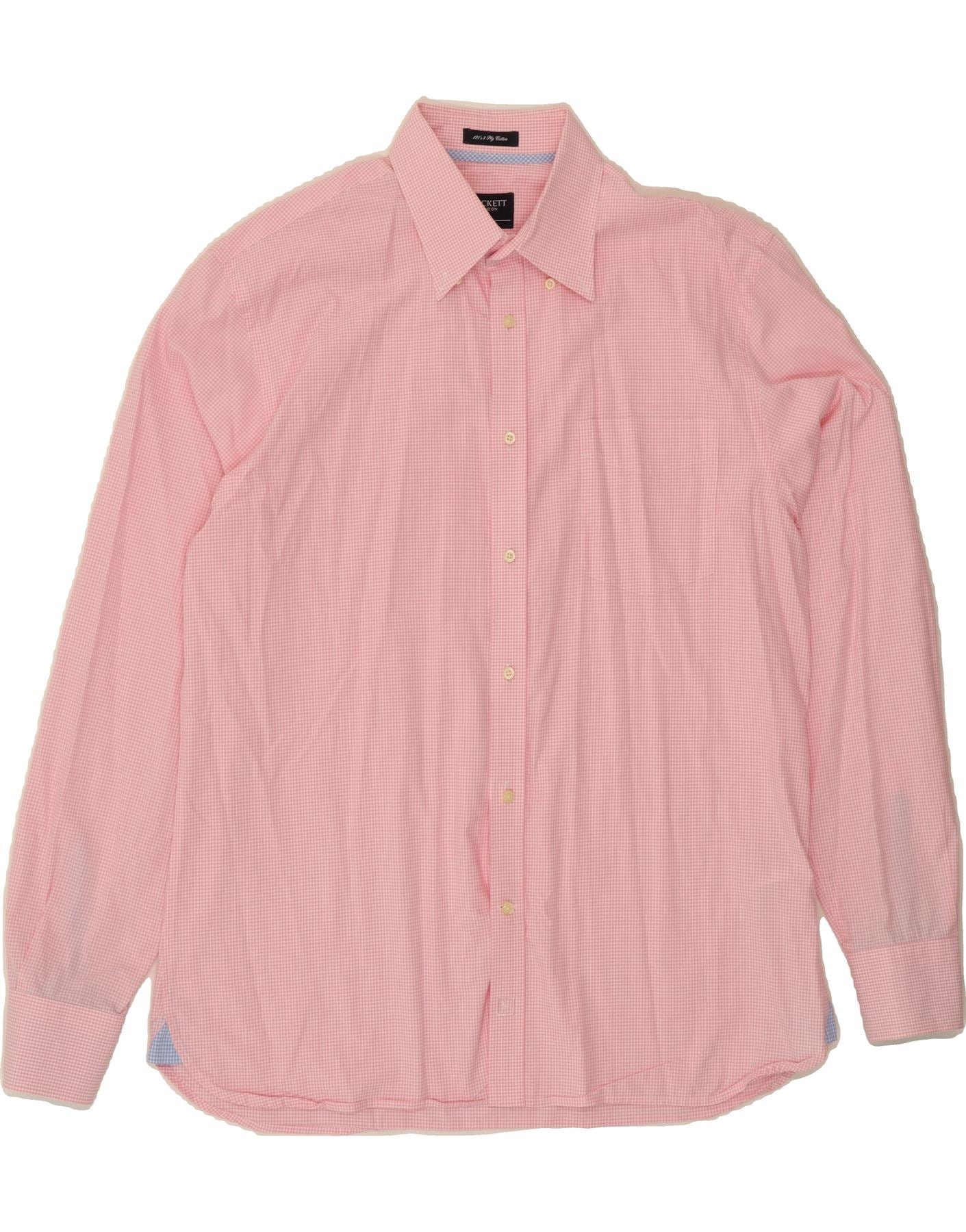 - AI Description: Elevate your wardrobe with this Hackett preppy shirt. Crafted from 100% cotton, this pink, long-sleeved shirt features a stylish checked pattern and a regular fit. Accented with button details, it includes a collared neckline and button closure. New with tags, this XLARGE shirt is machine washable at 30°C. A versatile addition to any discerning gentleman's collection.