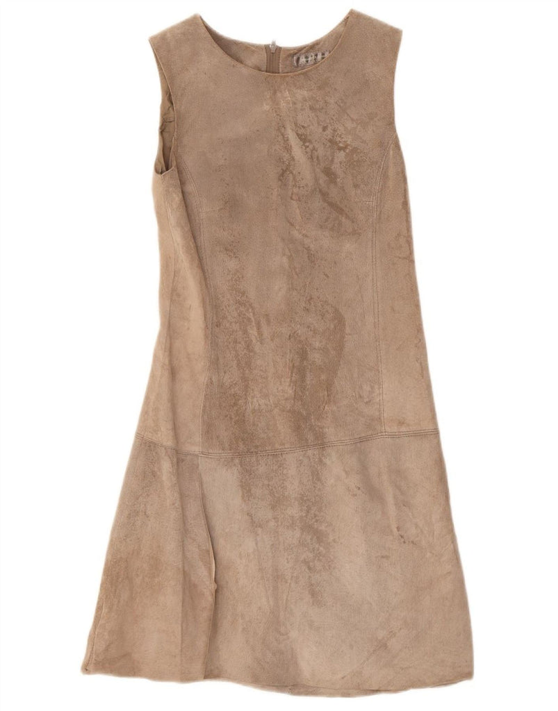 HALLHUBER Womens Sleeveless Suede Dress IT 36 XS Beige Leather