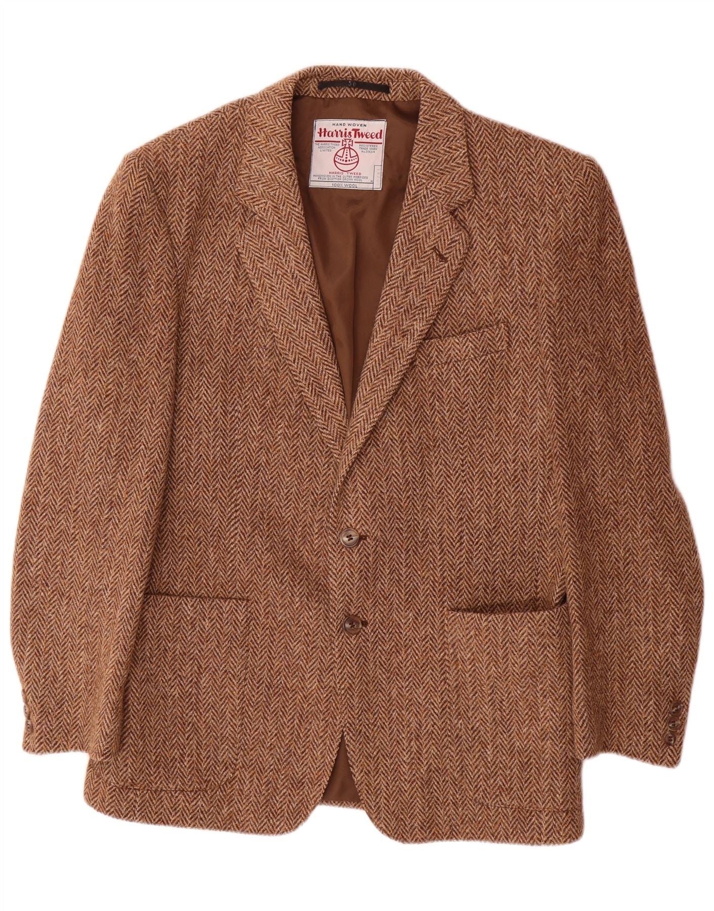 HARRIS TWEED Mens 2 Button Blazer Jacket EU 50 Large Brown Herringbone