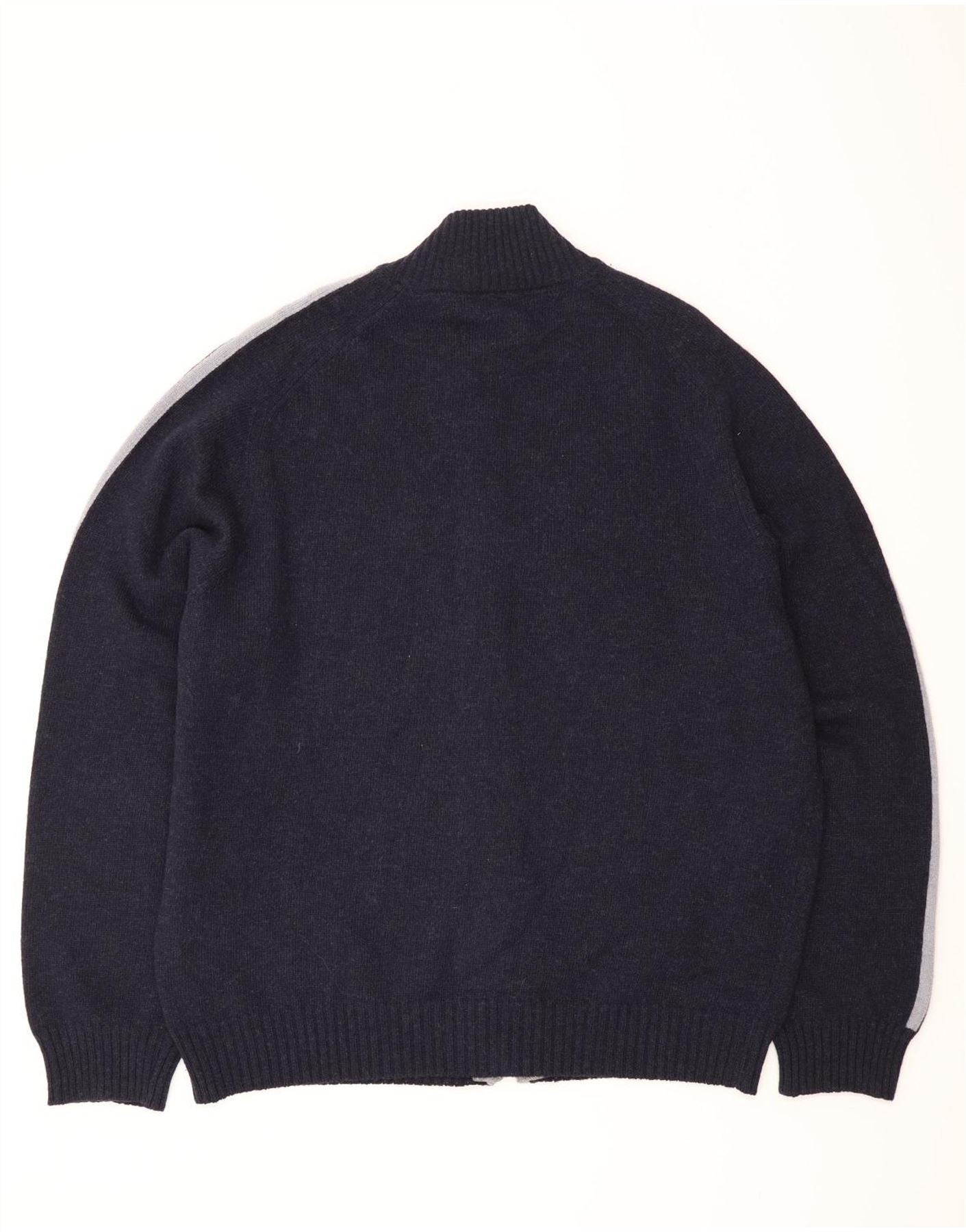 - Descriere AI: Acest pulover cardigan pentru bărbați Henry Cottons este realizat din lână nouă pură 100%, oferind o textură luxoasă de tricot. Are o nuanță bogată de bleumarin cu dungi gri distinctive de-a lungul mânecilor lungi. Decolteul cu guler și închiderea completă cu fermoar oferă un aspect clasic, versatil. O potrivire regulata asigura o purtare confortabila. Această piesă combină căldura cu stilul sofisticat, perfectă pentru stratificare.