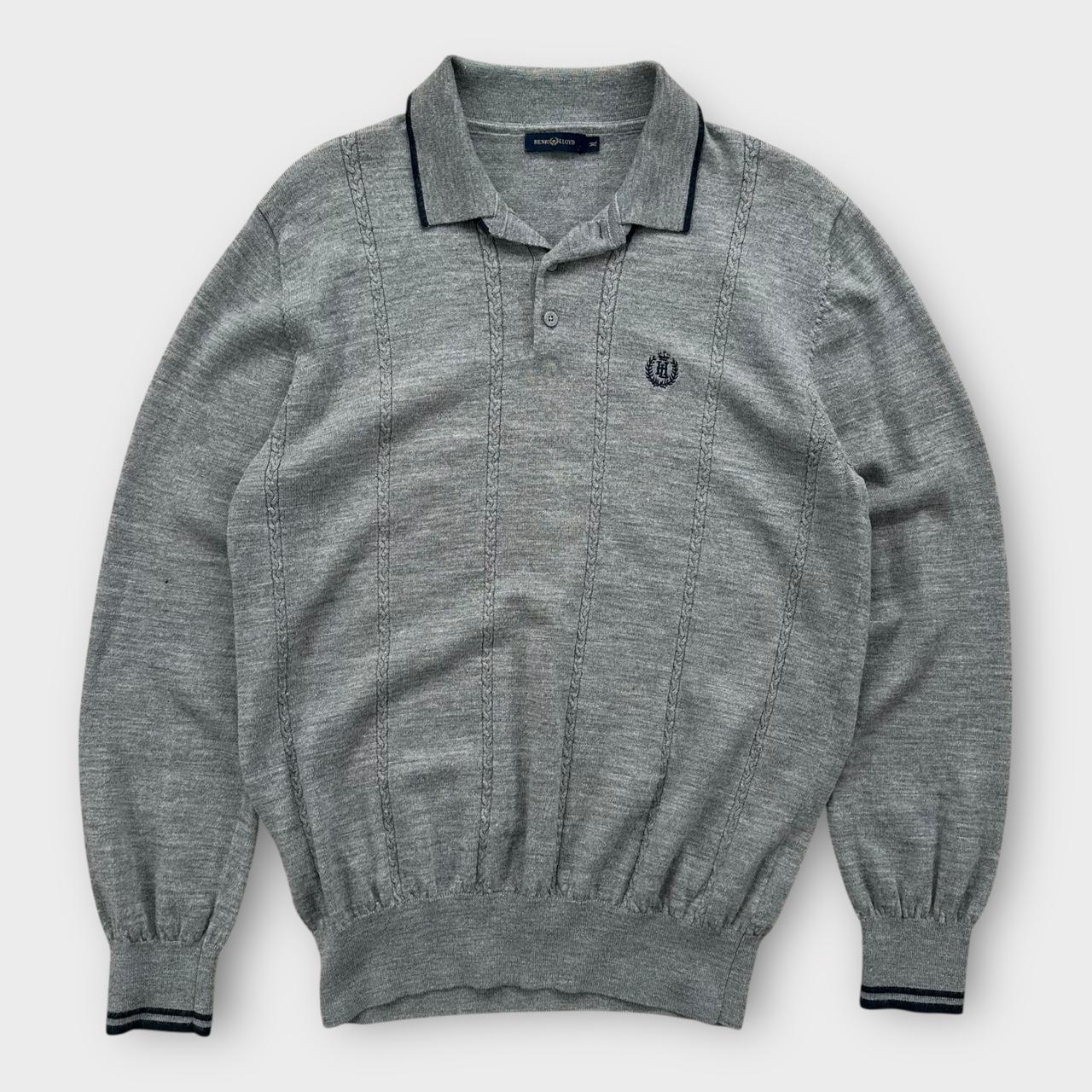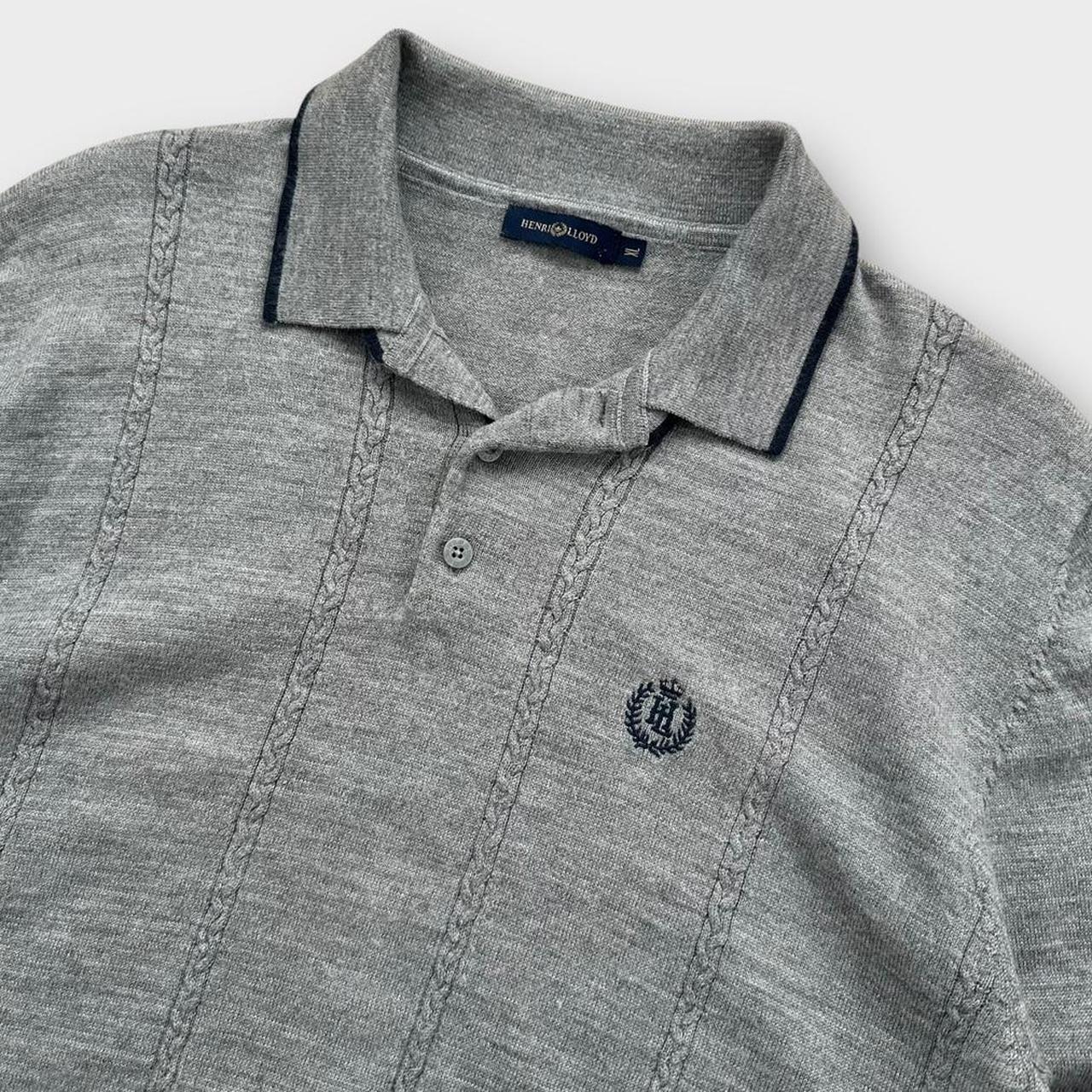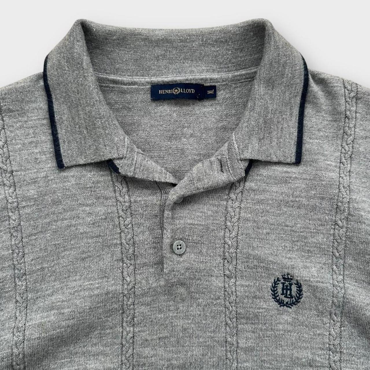 Pulover din tricot cu guler, de epocă, de la începutul anilor 2000, Henri Lloyd, de culoare gri, cu logo brodat pe piept