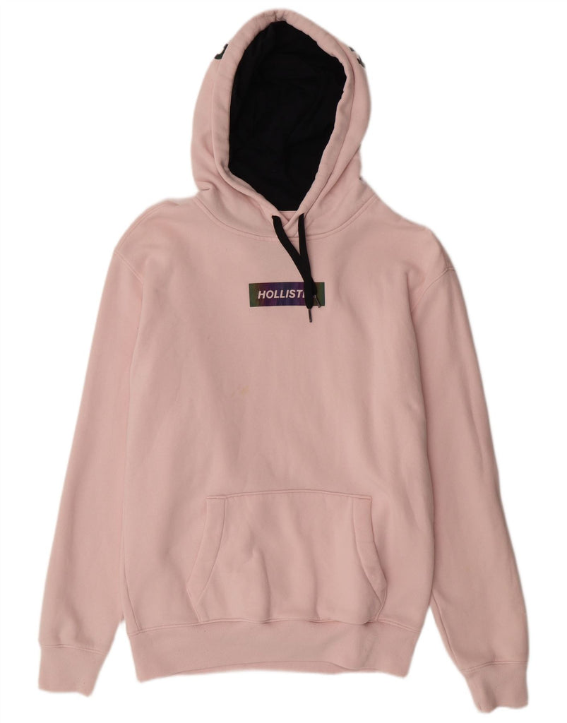 Pulover cu glugă cu grafică HOLLISTER pentru bărbați, bumbac roz mediu