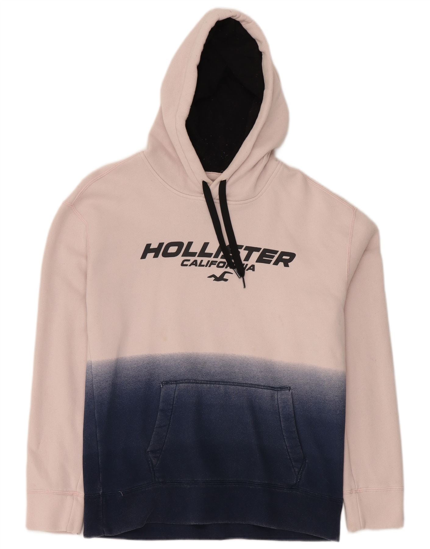 Pulover cu glugă cu grafică HOLLISTER pentru bărbați, bumbac color bloc, roz mic