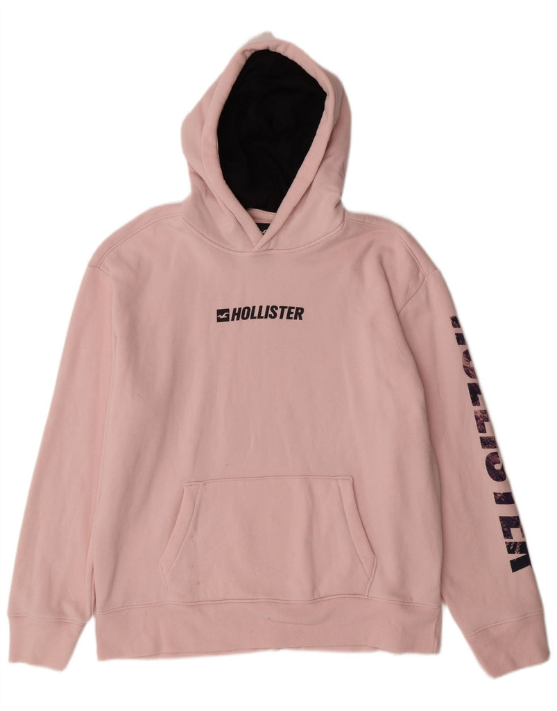 Pulover cu glugă cu grafic pentru bărbați HOLLISTER XL, bumbac, roz