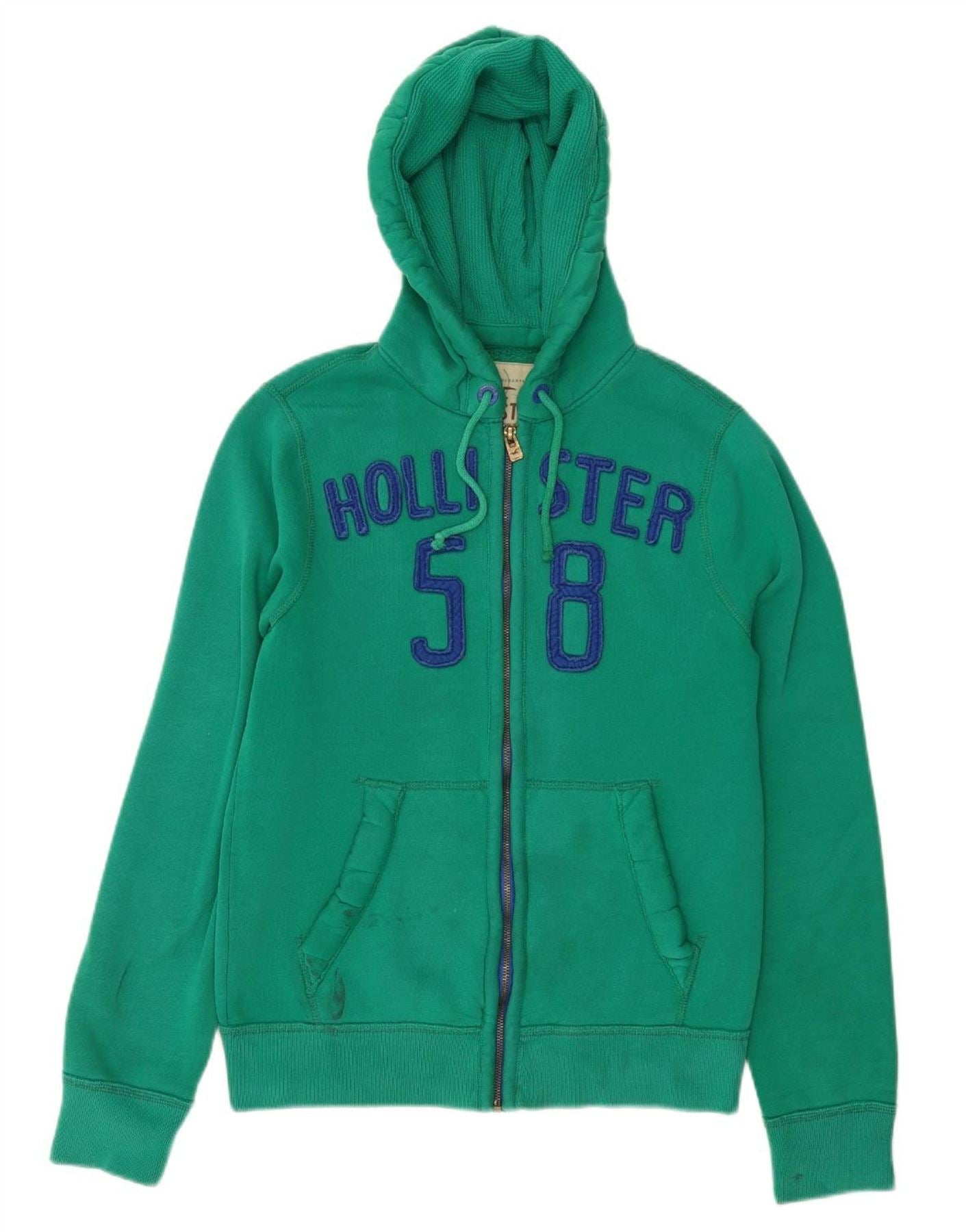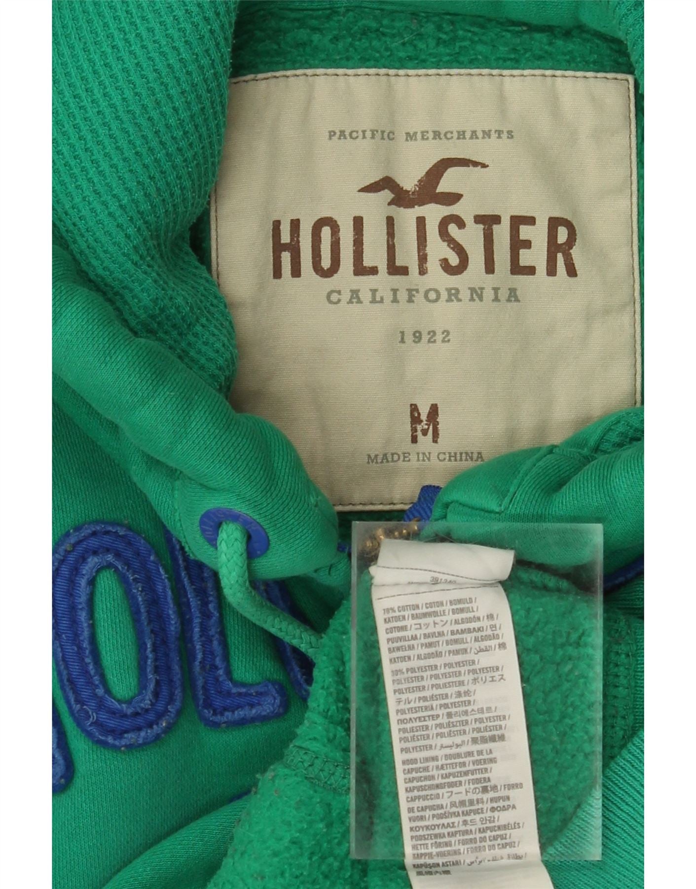 HOLLISTER Mens Graphic Zip Hoodie Sweater Medium Green Cotton