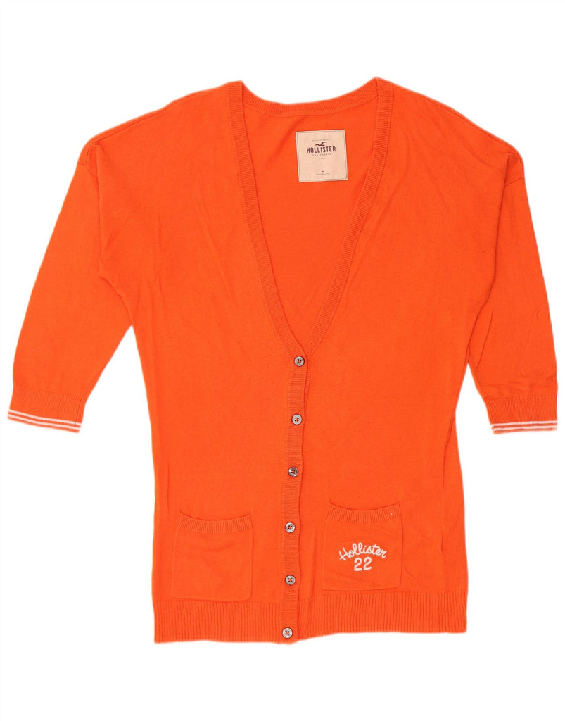 Pulover cardigan pentru femei HOLLISTER cu mâneci 3/4 UK 16 mare bumbac portocaliu