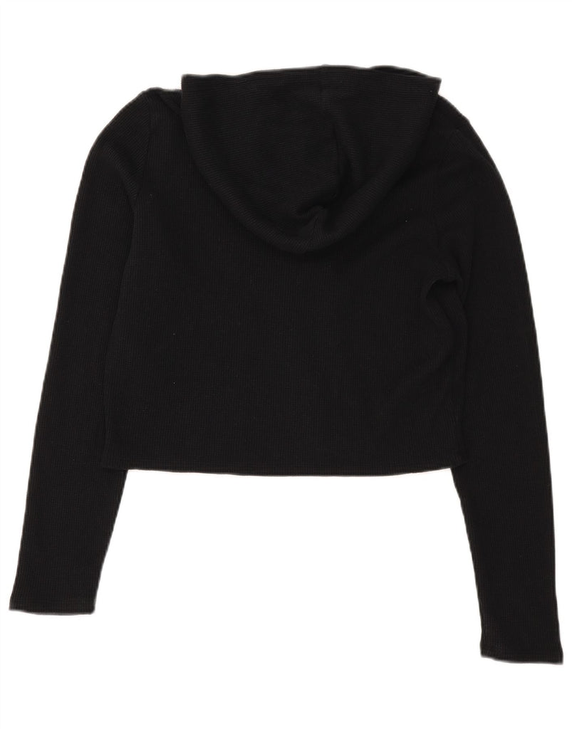 HOLLISTER Womens Crop Zip Hoodie Sweater UK 16 Large Black Cotton