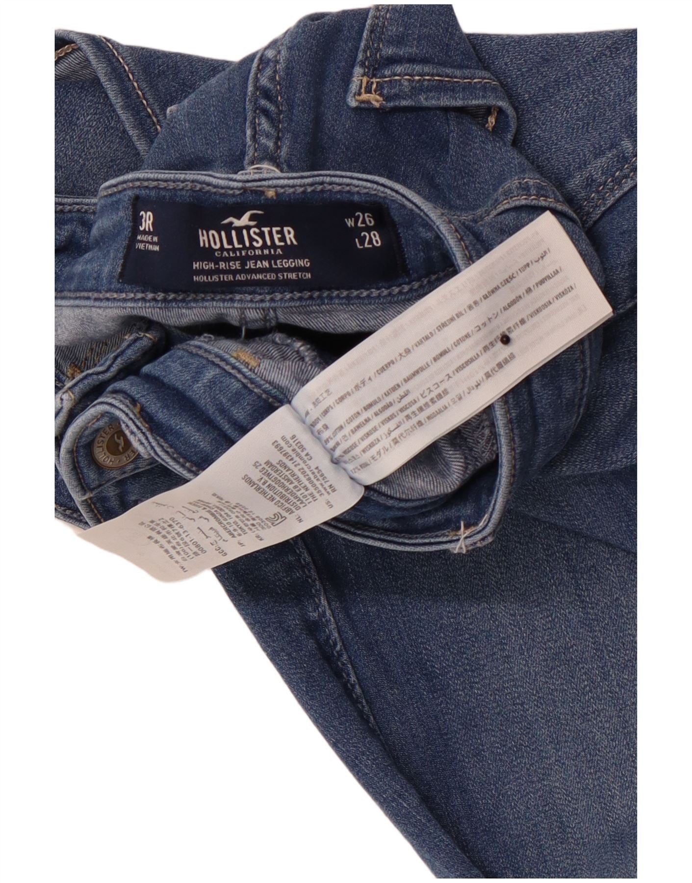 HOLLISTER Blugi cu talie înaltă cu jambiere învechite pentru femei W26 L28 bumbac albastru