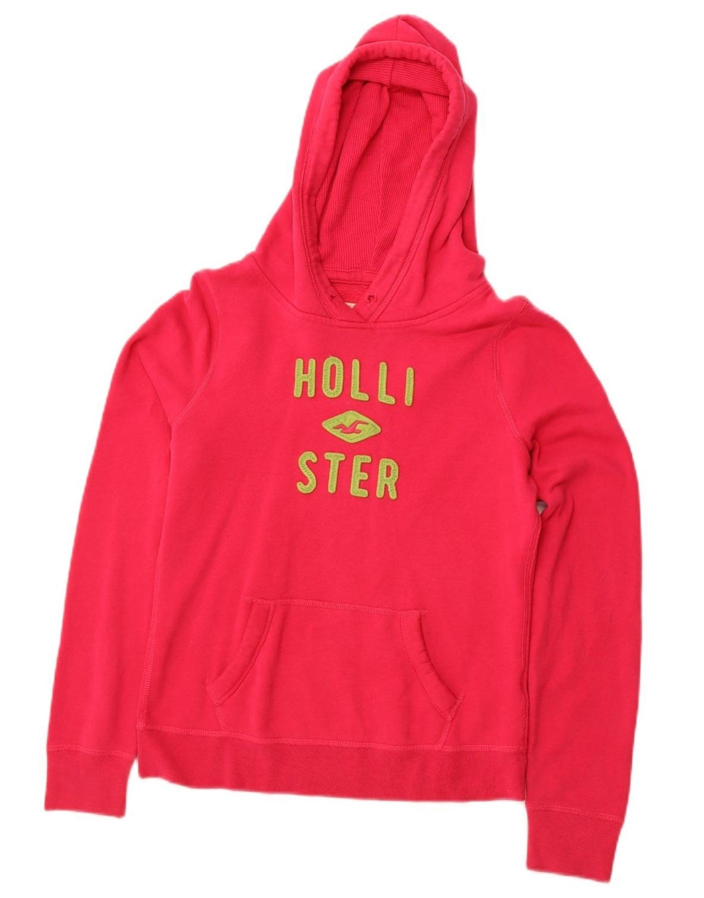 HOLLISTER Womens Graphic Hoodie Jumper UK 12 Medium Pink Cotton