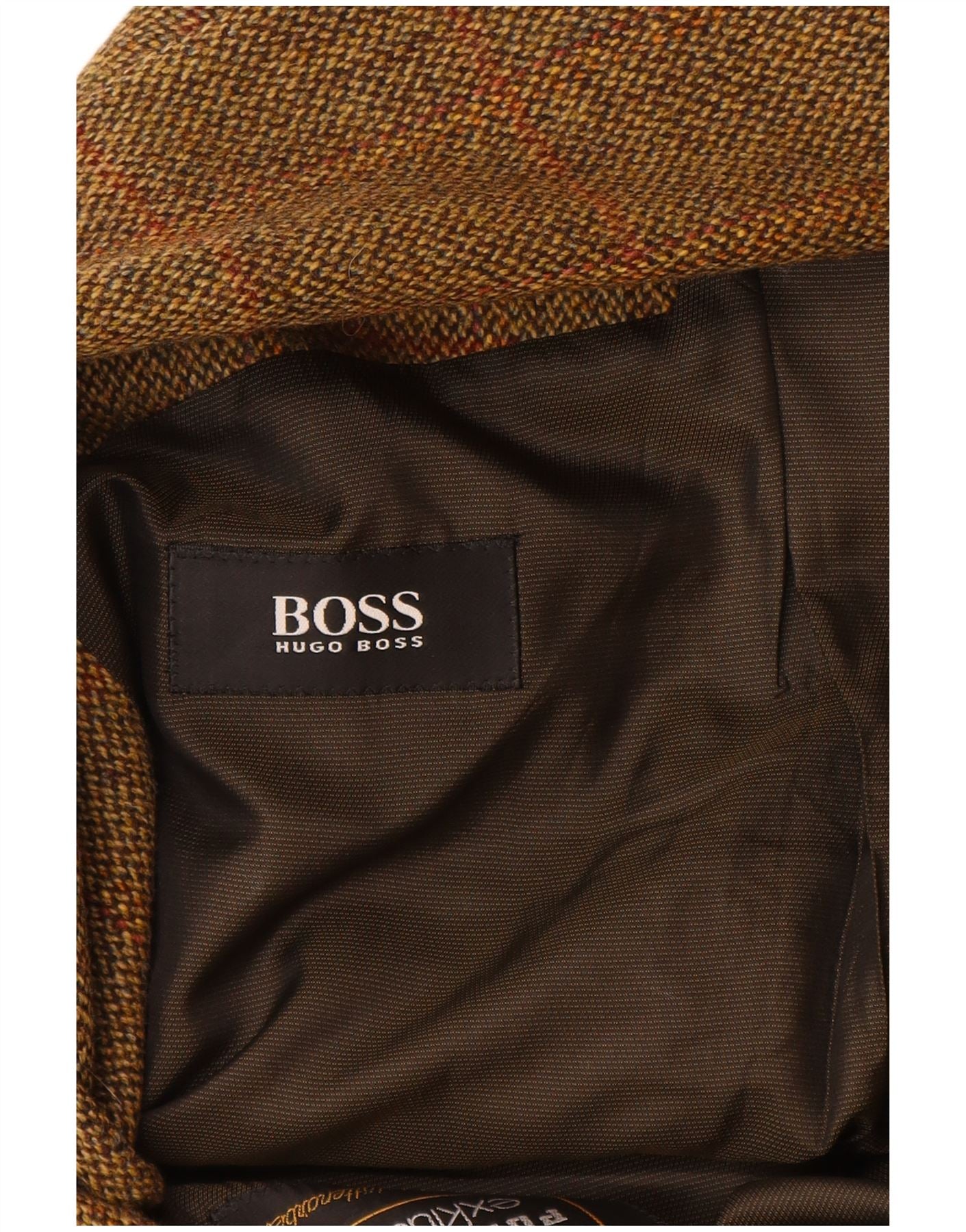 Jachetă pentru bărbați HUGO BOSS cu 2 nasturi EU 56 3XL Lână nouă cu carouri maro