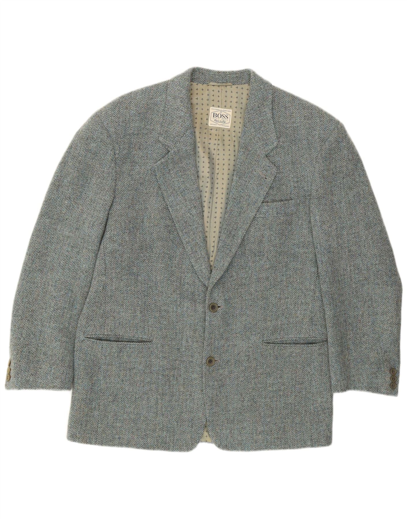 Blazer pentru bărbați HUGO BOSS cu 2 nasturi IT 52 XL Blue Herringbone Lână nouă