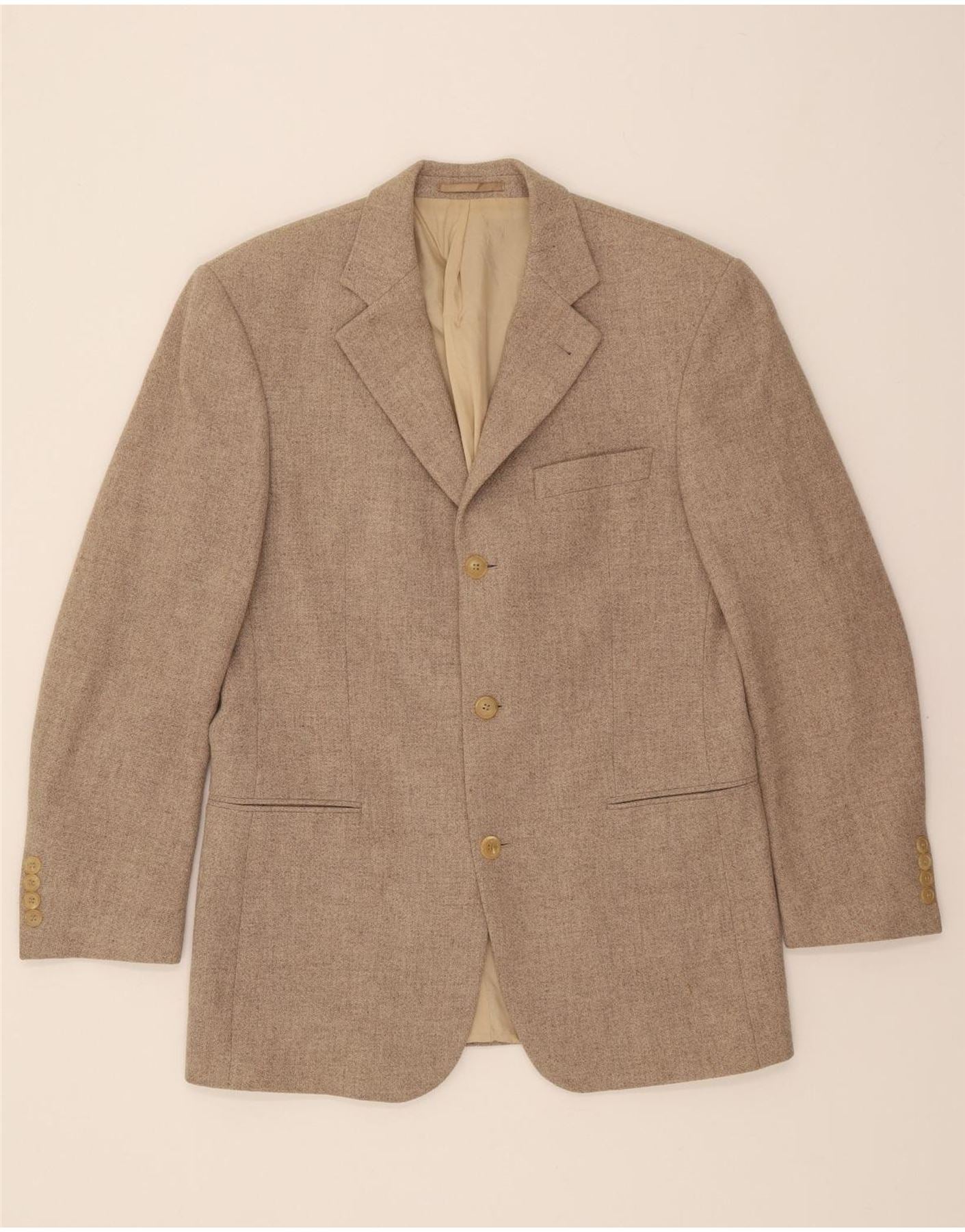 HUGO BOSS Mens 3 Button Blazer Jacket Size 94 Medium Beige Virgin Wool