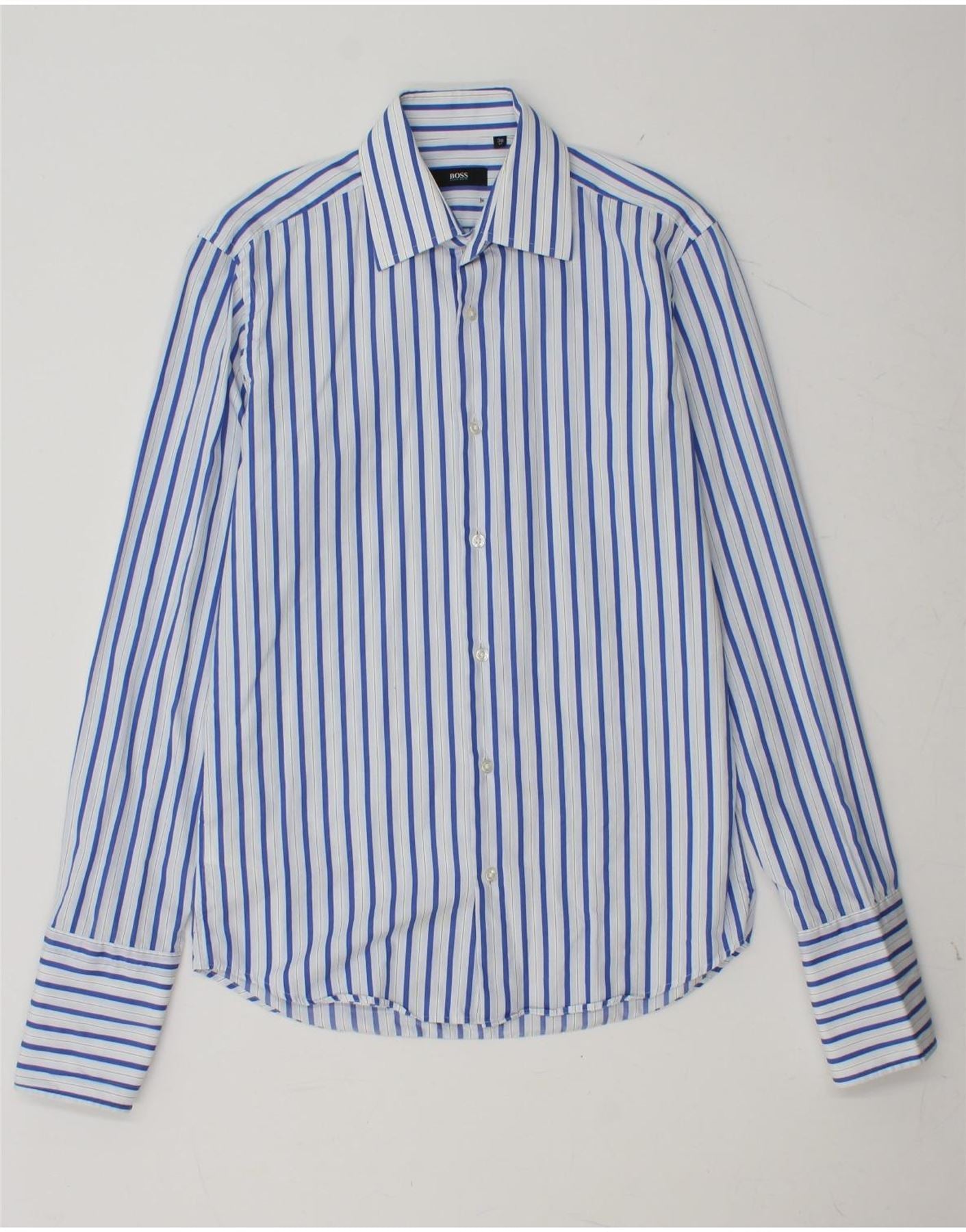 Cămașă formală pentru bărbați HUGO BOSS Mărimea 38 15 Bumbac cu dungi albastre medii