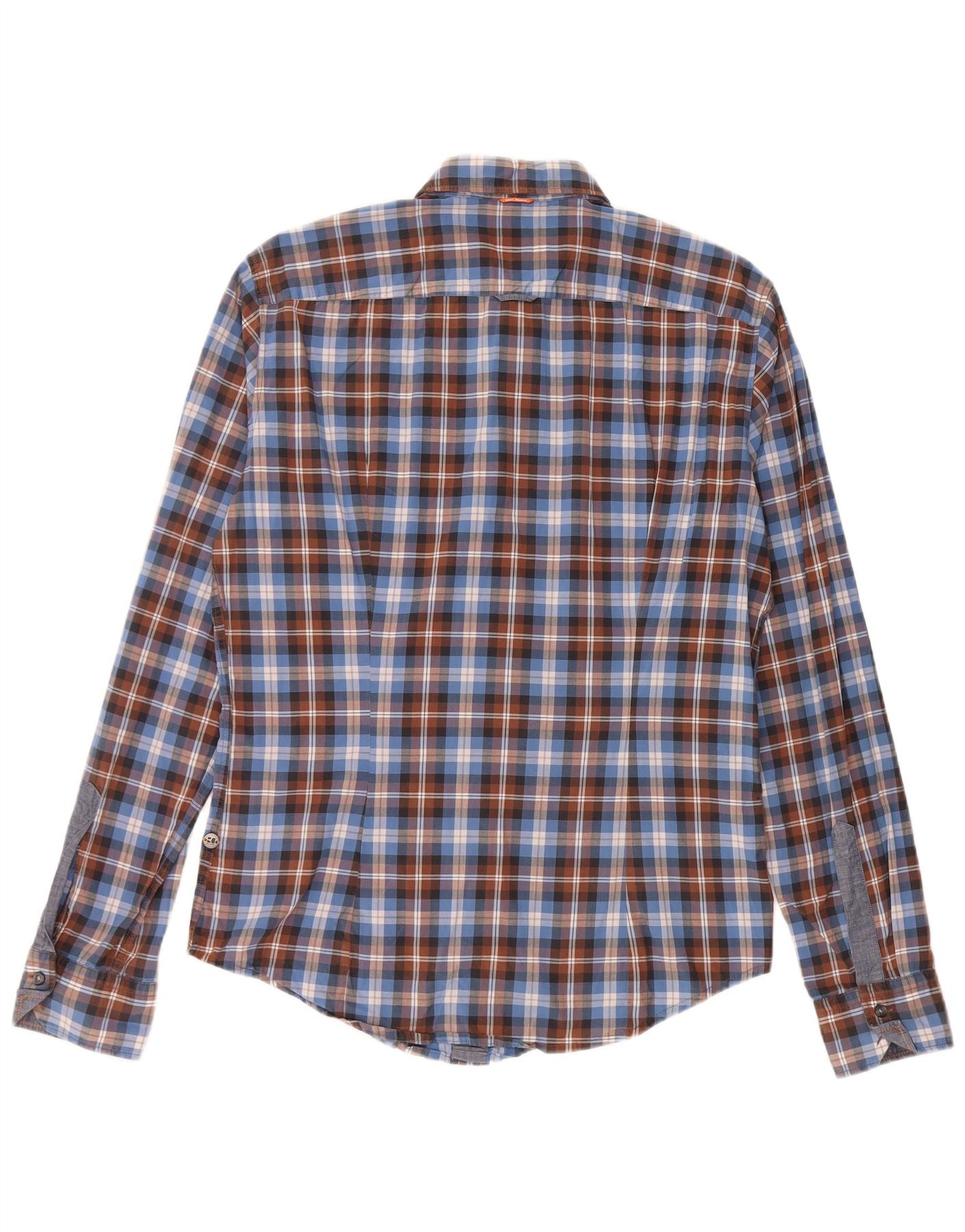 Cămașă pentru bărbați HUGO BOSS, bumbac cu carouri albastru mediu