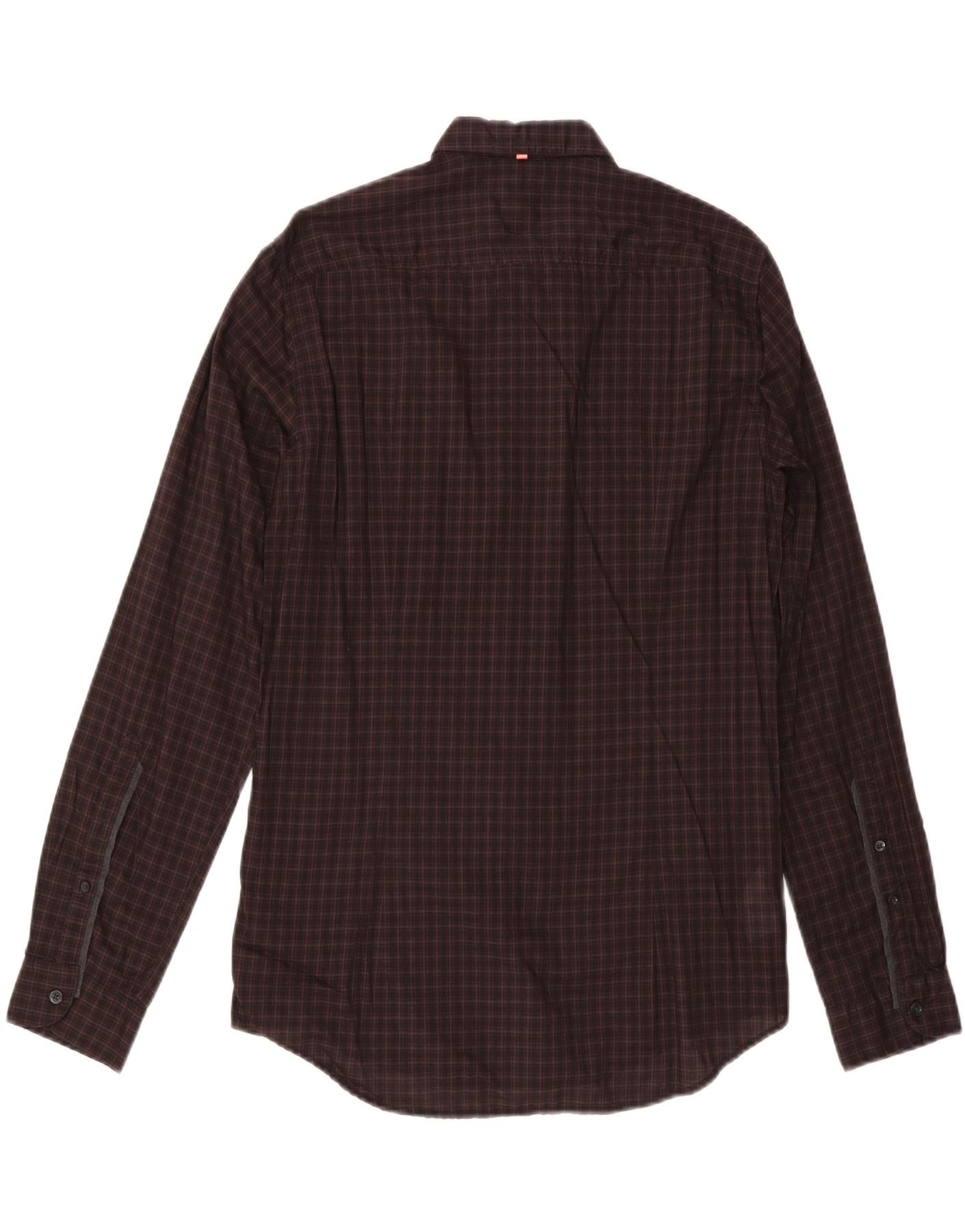 Cămașă pentru bărbați HUGO BOSS din bumbac cu carouri maro mediu