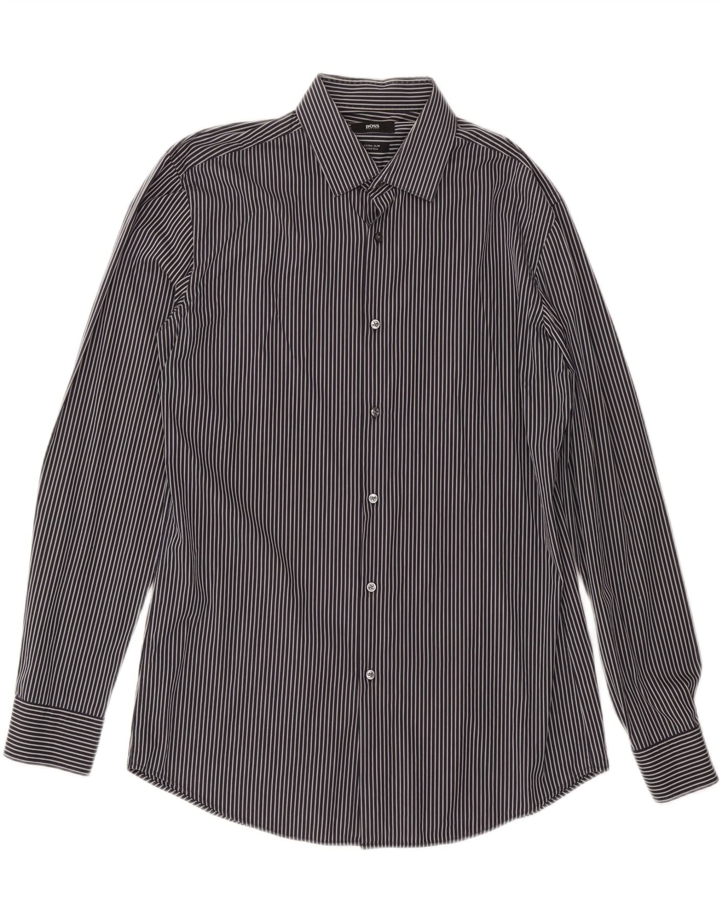 Cămașă elastică pentru bărbați HUGO BOSS Mărimea 42 16 1/2 mare, neagră, cu dungi
