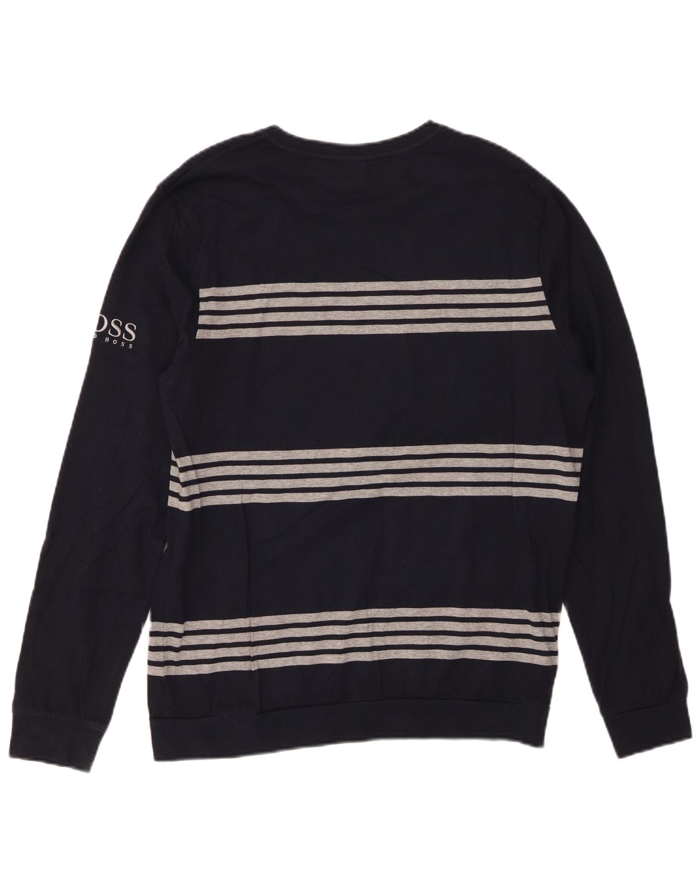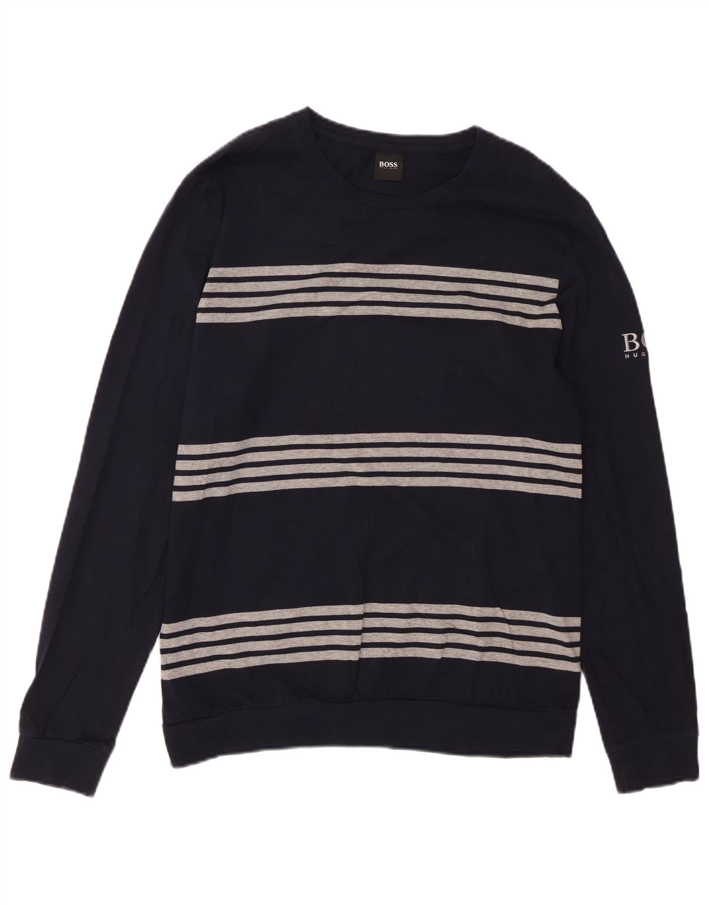 Top pentru bărbați HUGO BOSS cu mânecă lungă, mediu bleumarin, bumbac cu dungi