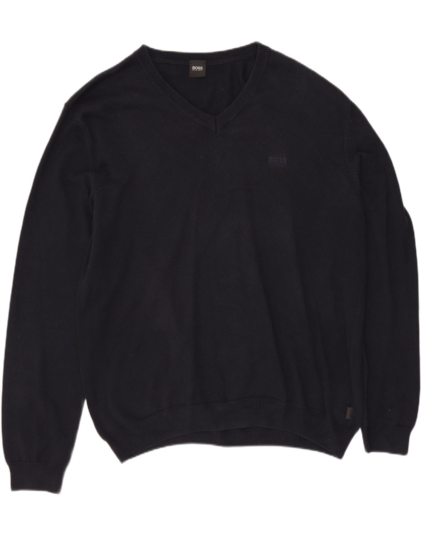 HUGO BOSS Pulover cu decolteu în V pentru bărbați, XL, bumbac bleumarin