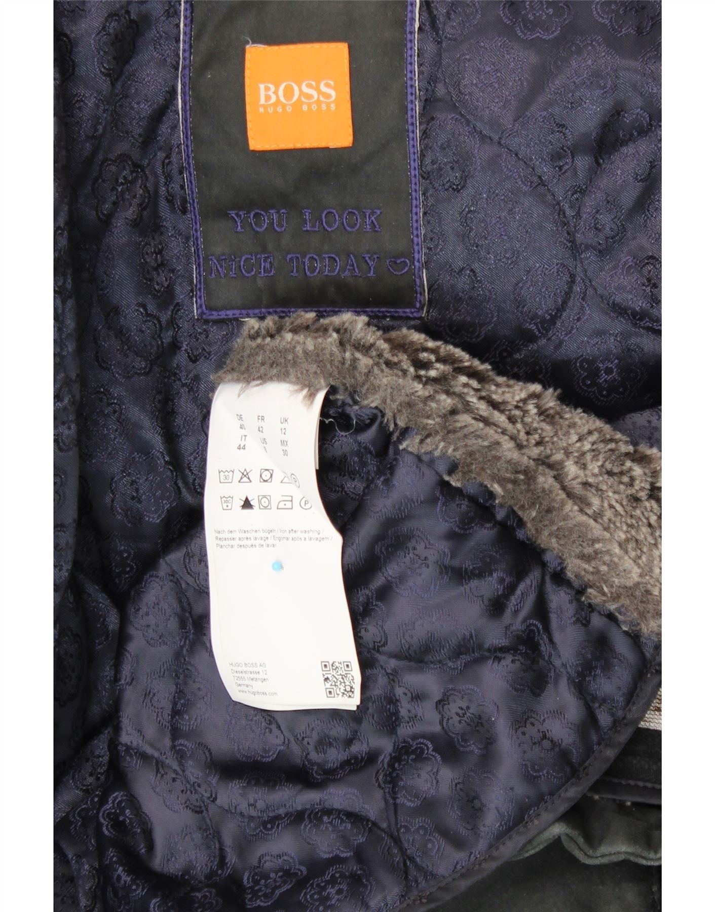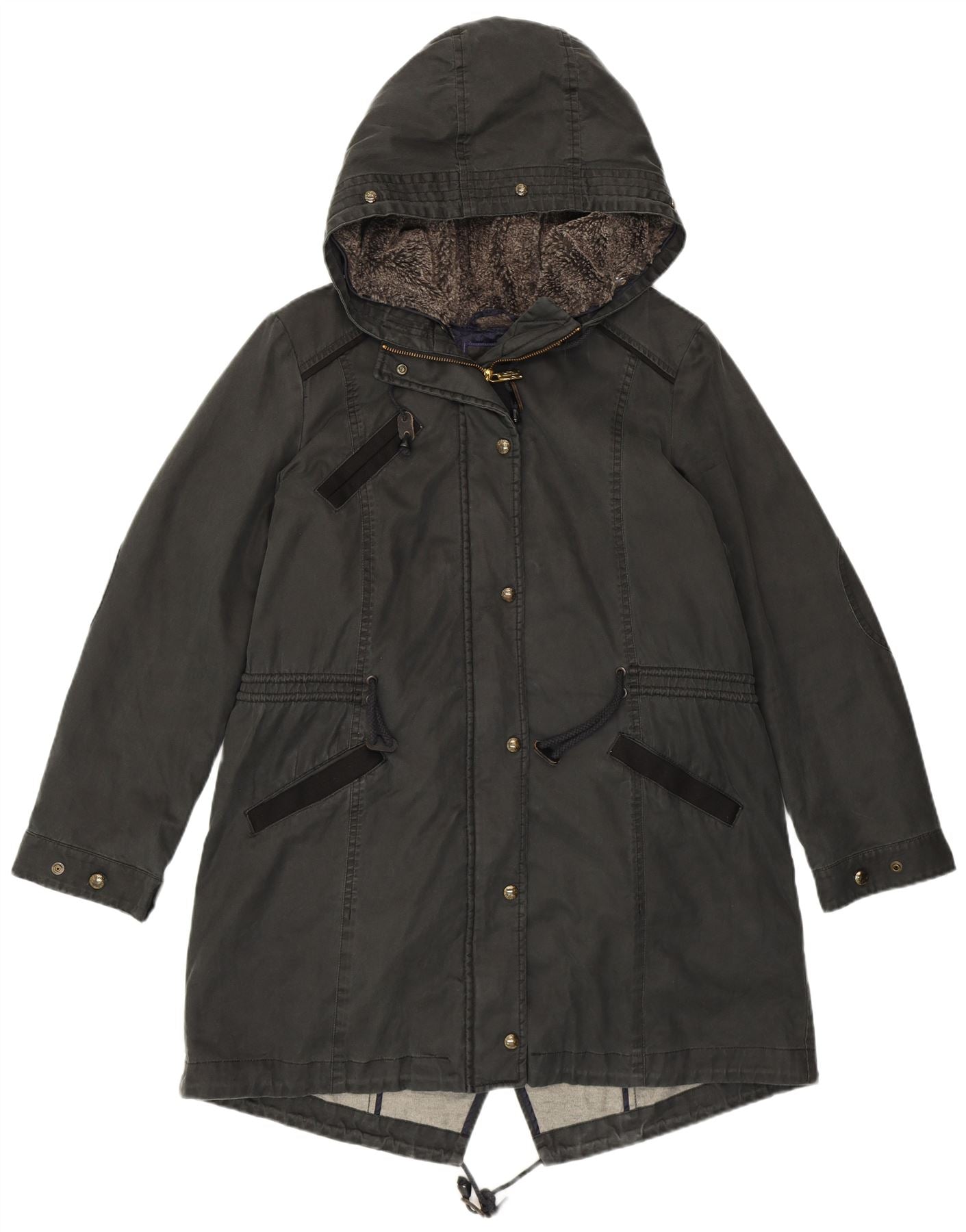 HUGO BOSS Womens Hooded Parka Jacket UK 12 Medium Black Cotton