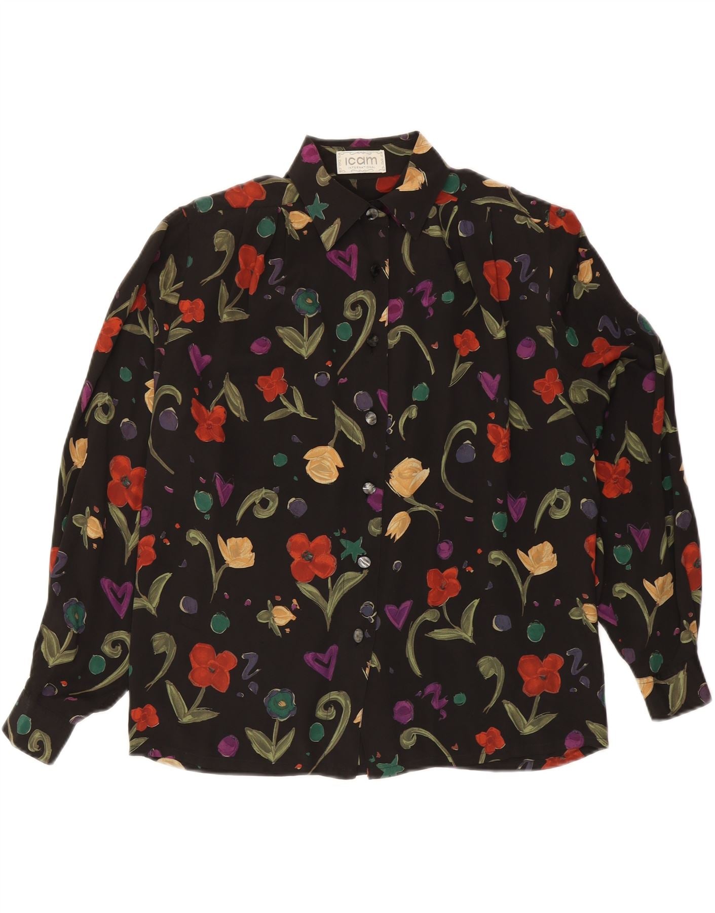 Bluză cămașă pentru femei ICAM IT 46 Acetat floral mare negru