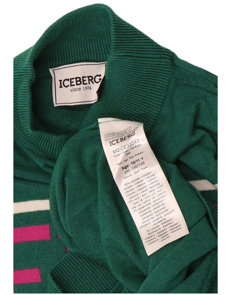 ICEBERG Girls Graphic Turtle Neck Jumper Sweater 10-11 Years Green Viscose