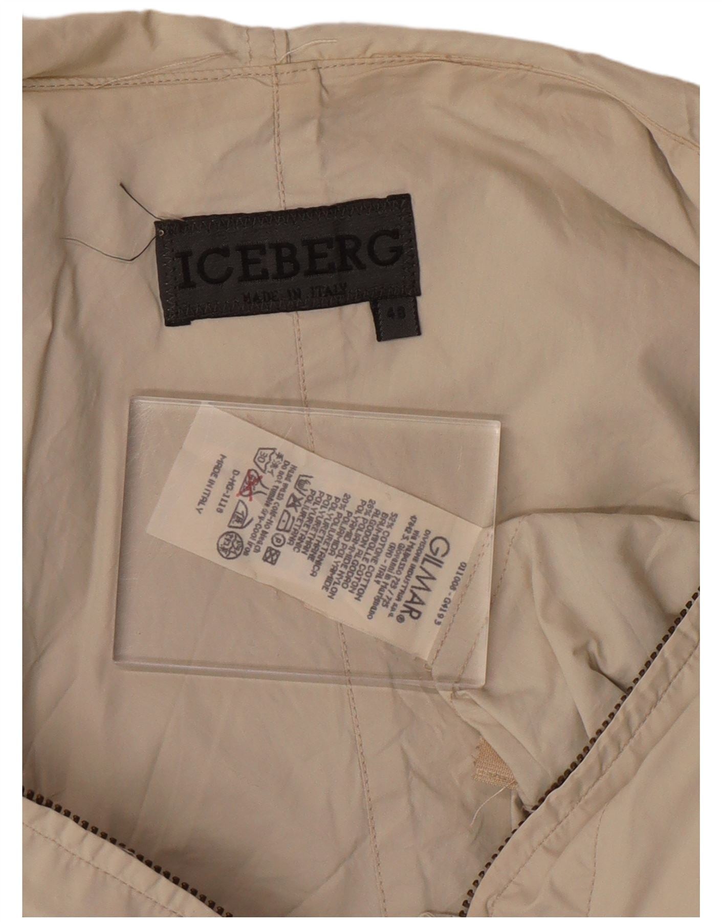 ICEBERG Mens Hooded Windbreaker Jacket IT 48 Medium Beige Cotton