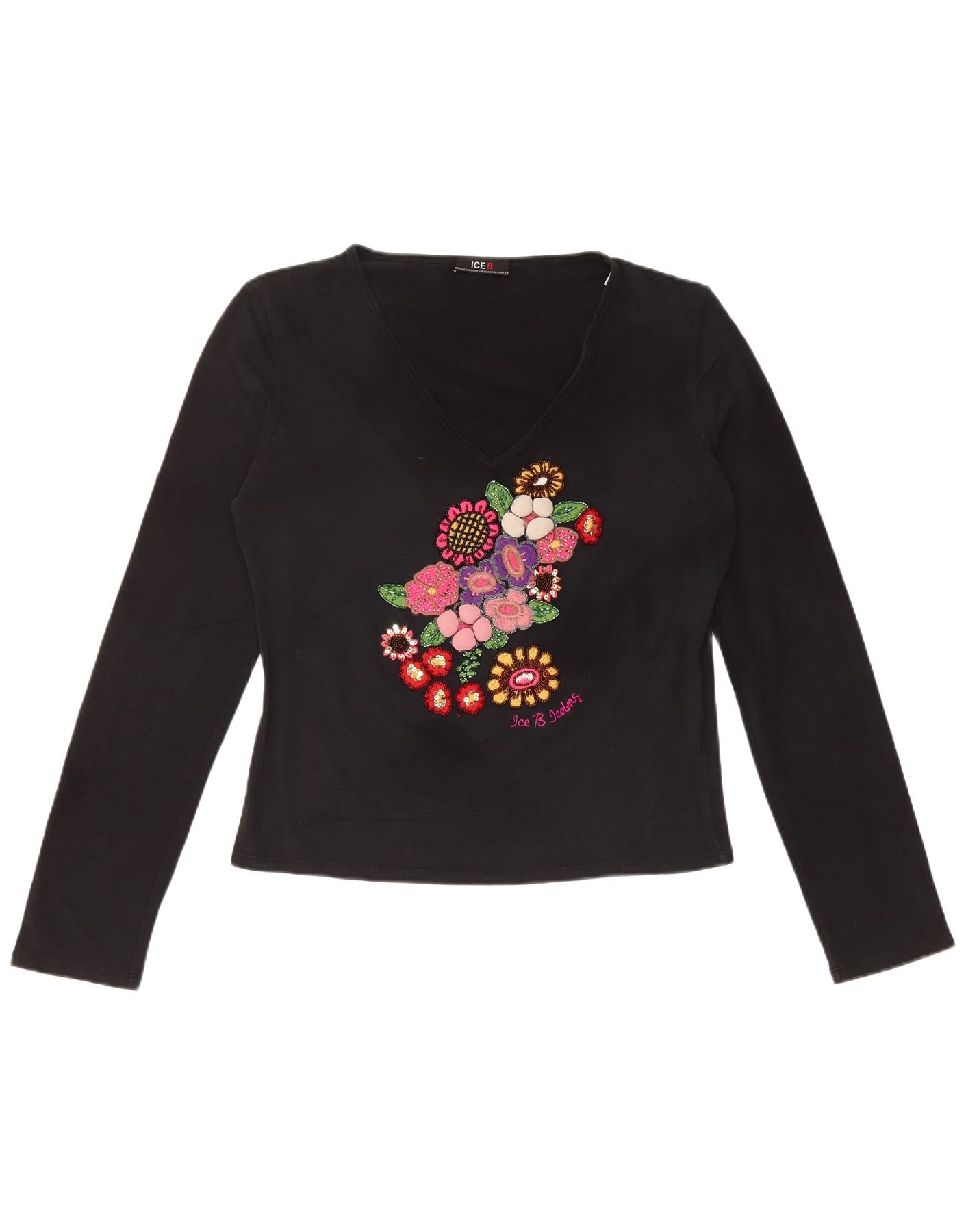 ICEBERG Crop Graphic Top cu mânecă lungă pentru femei IT 46 Large Black Floral