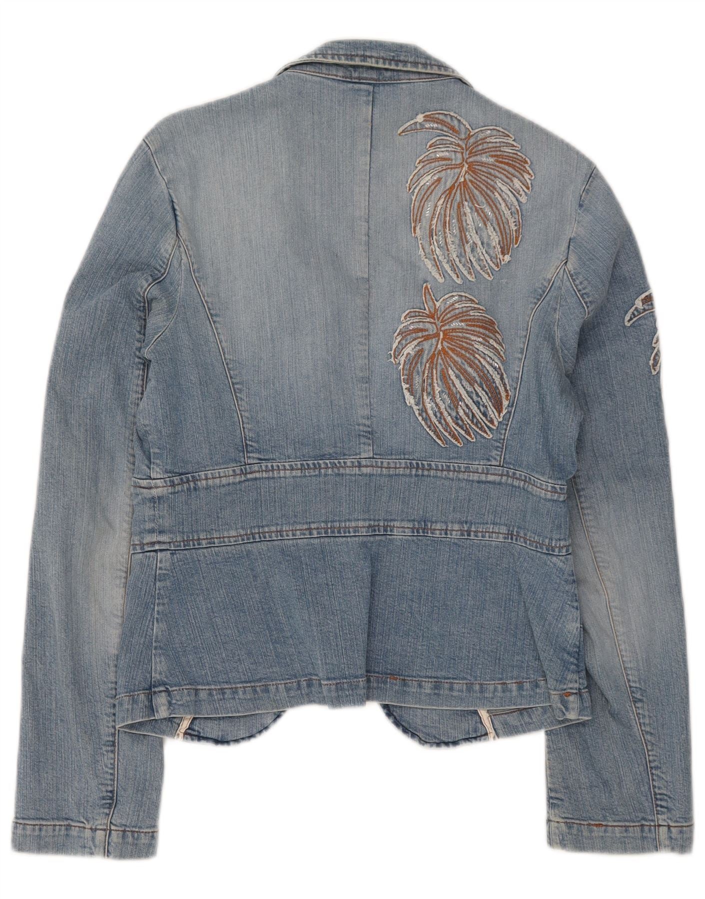 ICEBERG Womens Denim Blazer Jacket IT 46 Large Blue Floral Cotton
