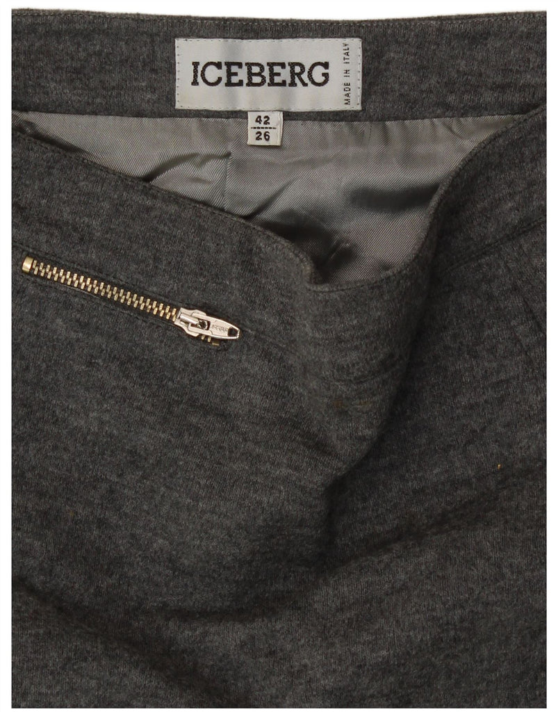 ICEBERG Womens High Waist A-Line Skirt IT 42 Medium W26 Grey New Wool